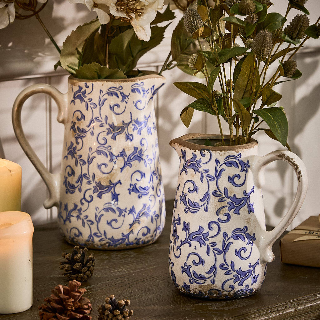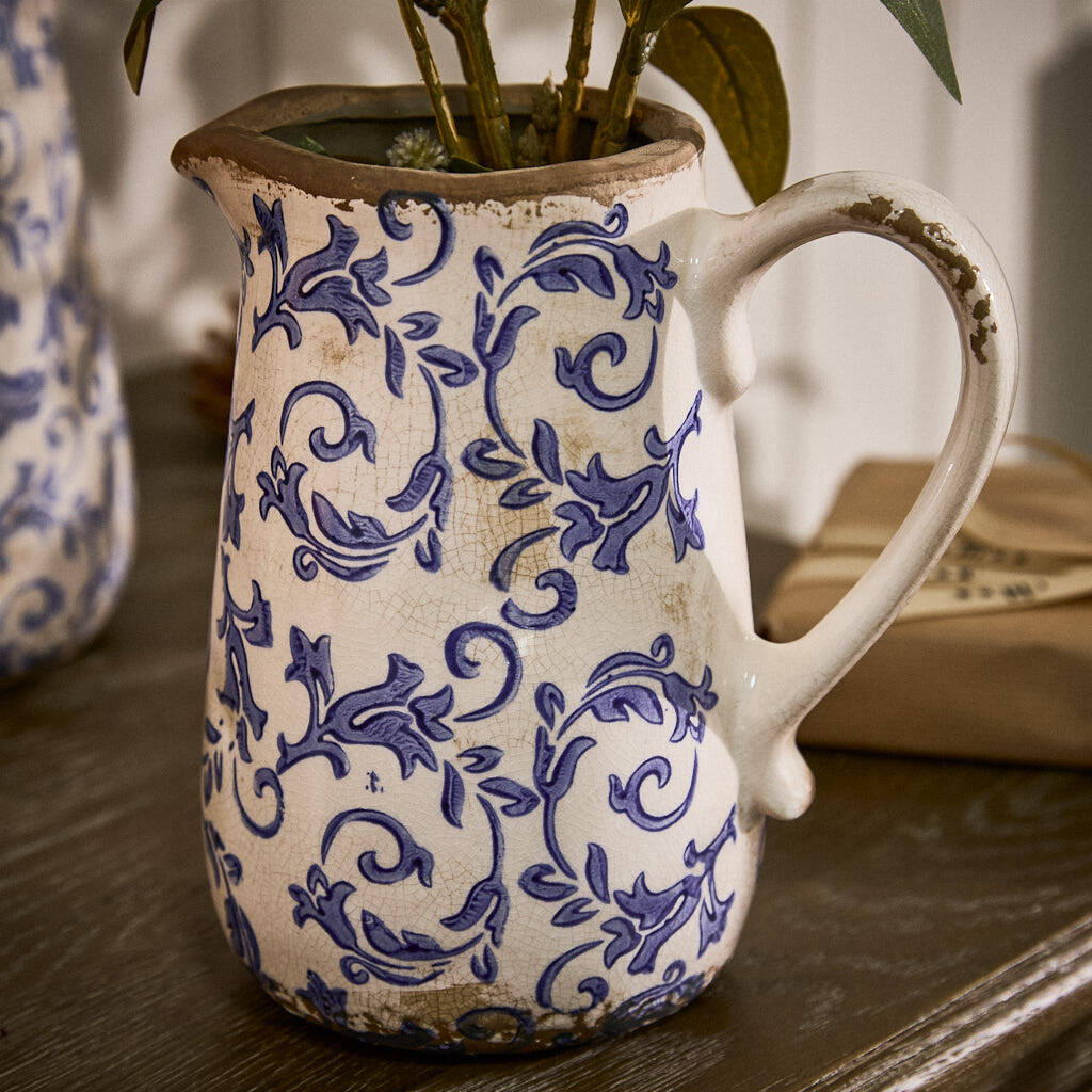 Available in a choice of two sizes, our traditional pitcher boasts a botanical inspired floral design, making a rustic home accessory.
