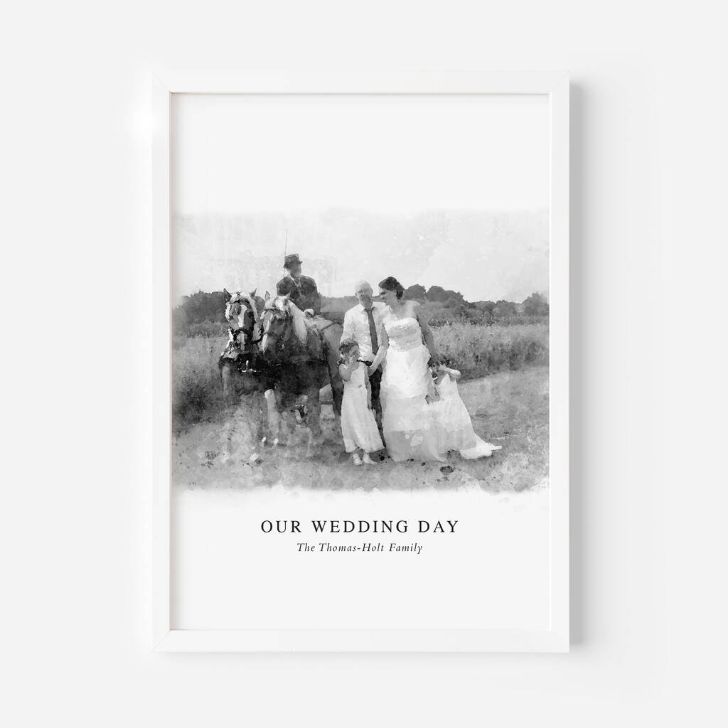 A beautifully illustrated print created from your own photo. The perfect way to remember your wedding day or celebrate a special couple.