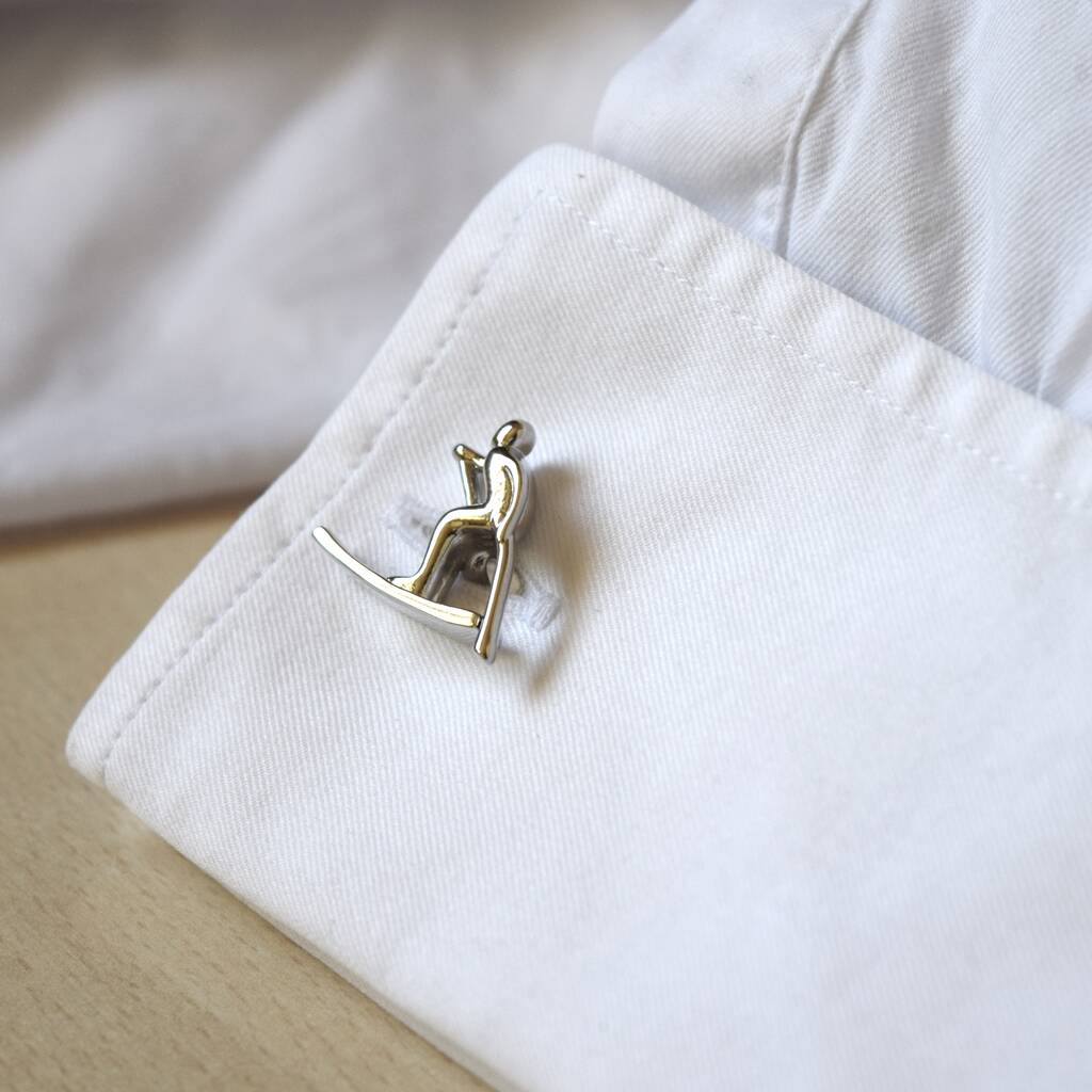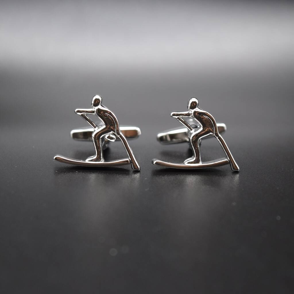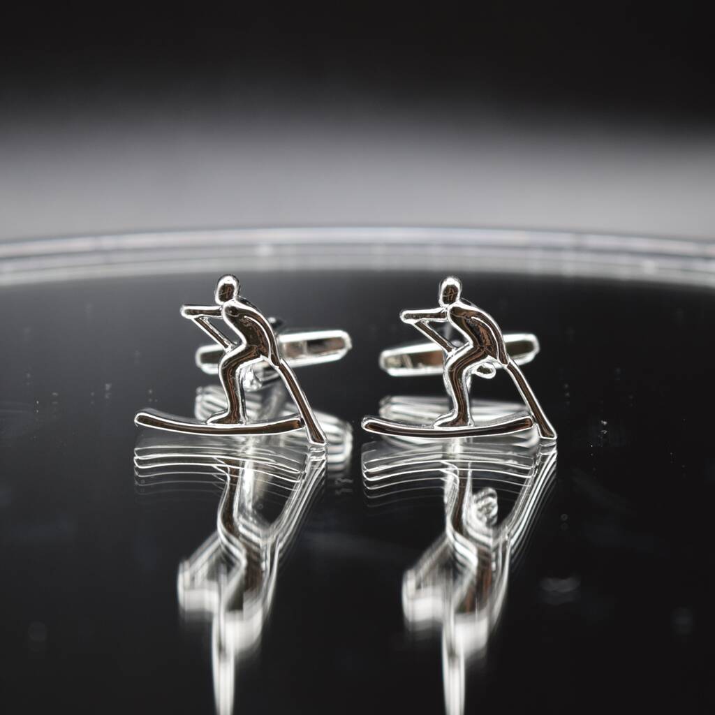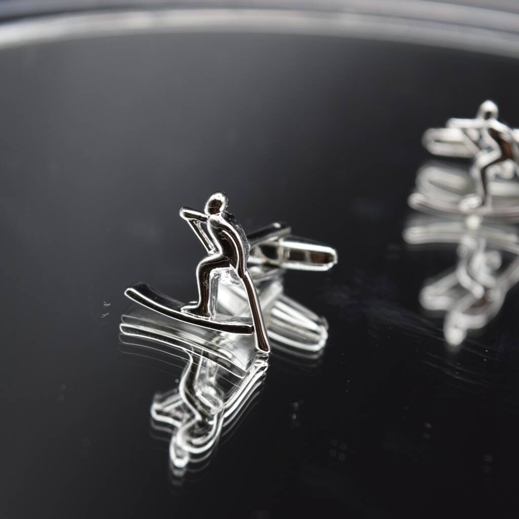 Skiing Cufflinks Silver Skier Design Gift For Winter Sports Lovers