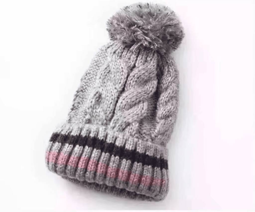 Fur Lined Bobble Beanie Hat Chemo Headwear