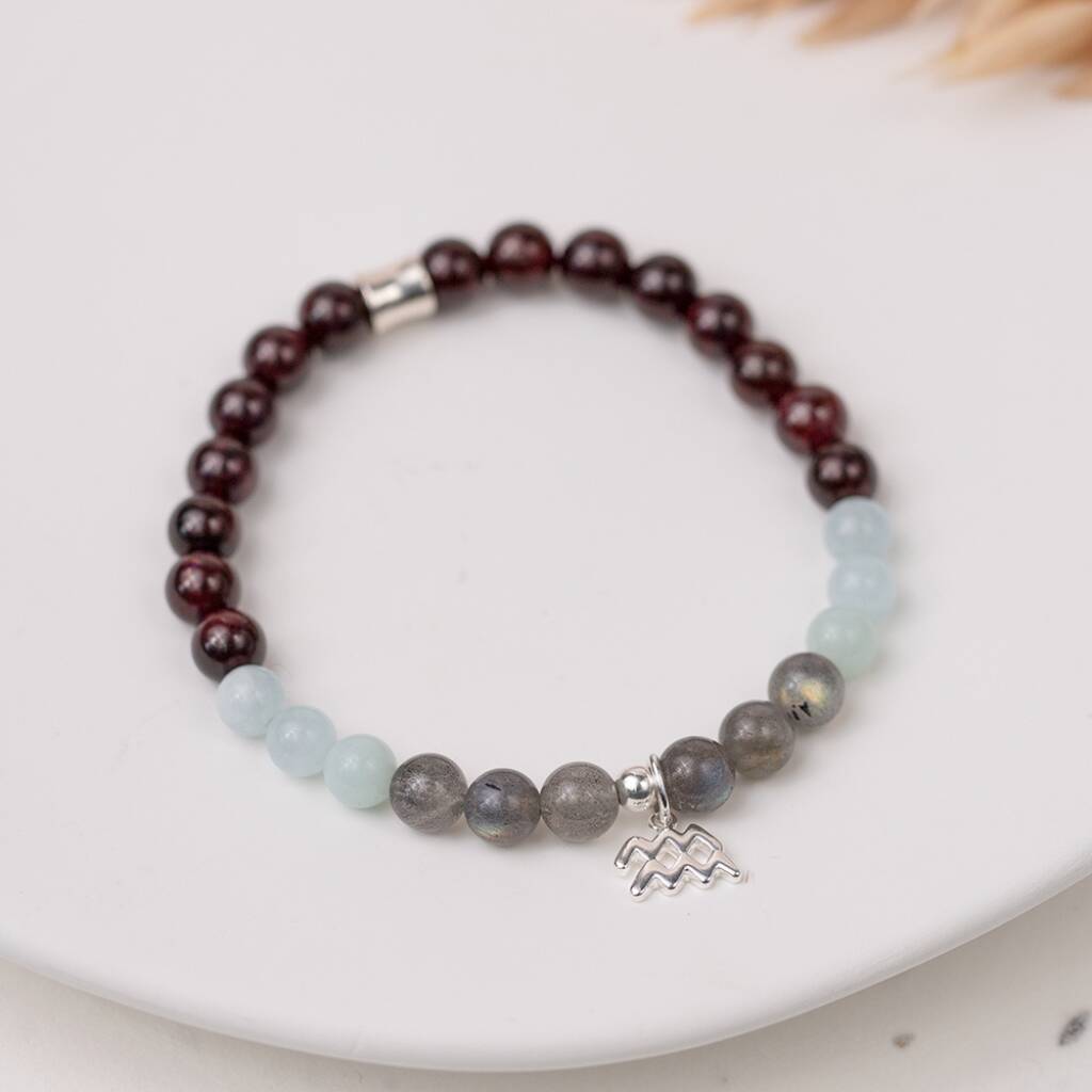 Aquarius Birthstone Bracelet With Gemstones And Sterling Silver Zodiac Charm, 1 of 4