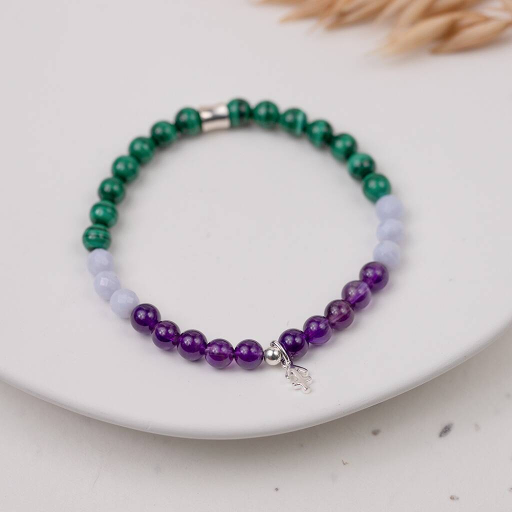 Celebrate the free-spirited energy of Sagittarius with this December birthstone bracelet, handcrafted with natural amethyst gemstone beads and sterling silver charm.