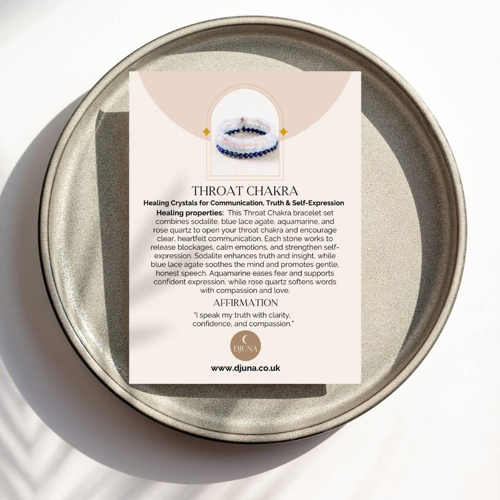 Discover the power of the throat chakra with our beautifully crafted crystal bracelet, designed to support clear communication, authentic self-expression, and emotional confidence.