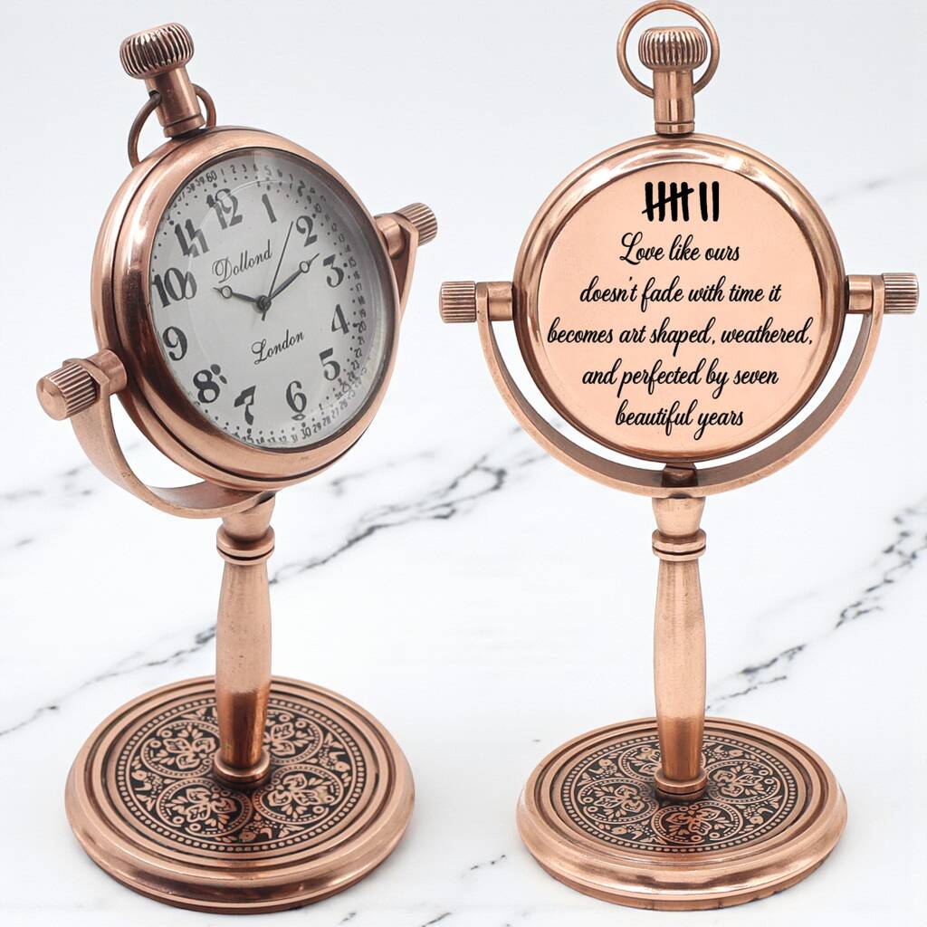 Personalised 7th Anniversary Gift Copper Desk Clock