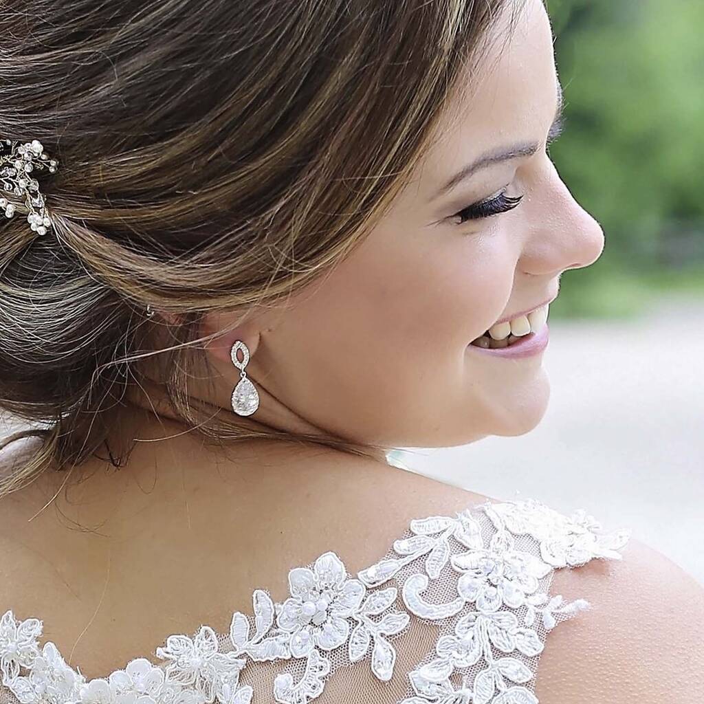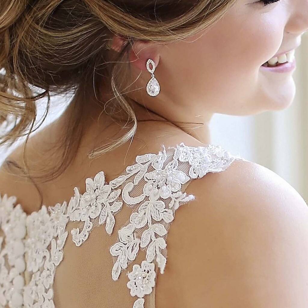 The crystals are securely set to prevent any loss, ensuring lasting beauty. Measuring approximately 18mm x 18mm at widest point, they make a perfect statement piece without feeling heavy on the ears. Their classic design makes them versatile enough to complement both vintage and modern wedding styles or evening outfits.