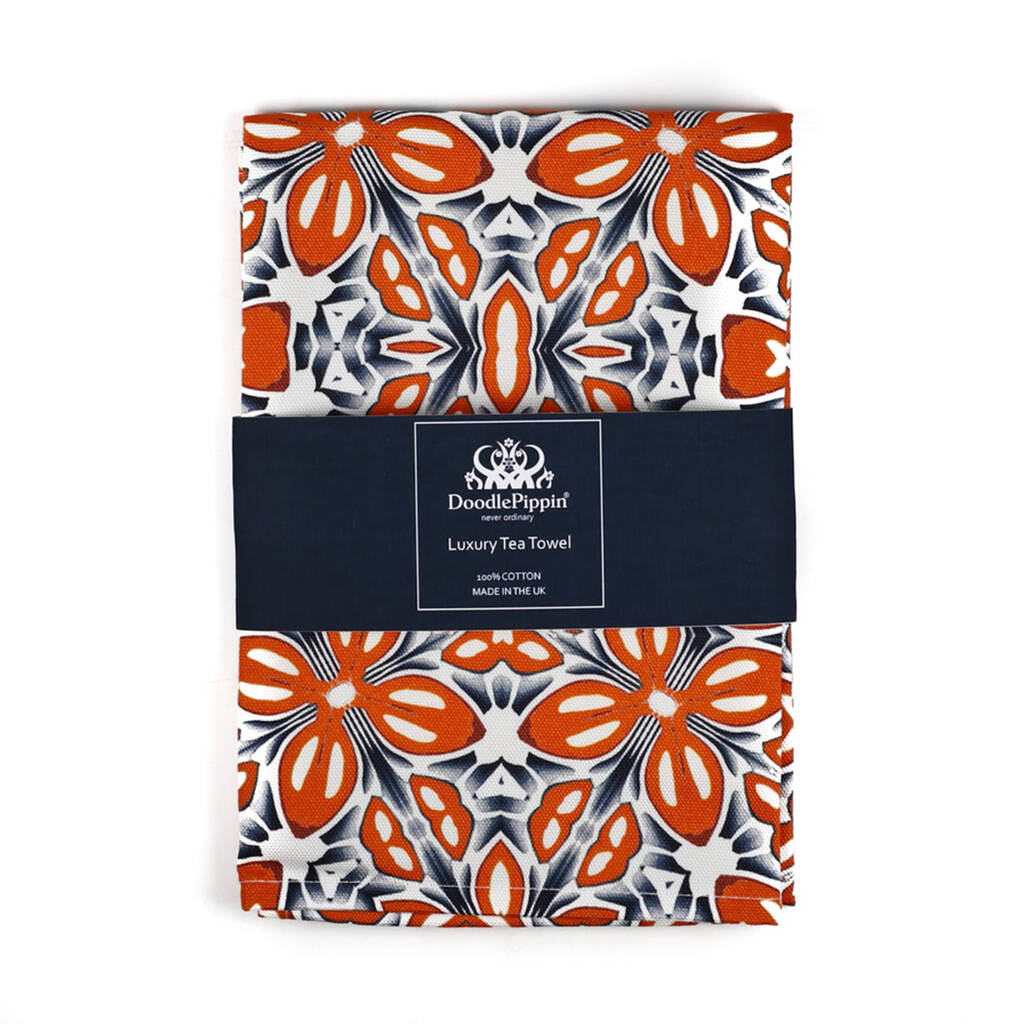 Orange Fox Flower Tea Towel | 100% Cotton | Made In The UK
