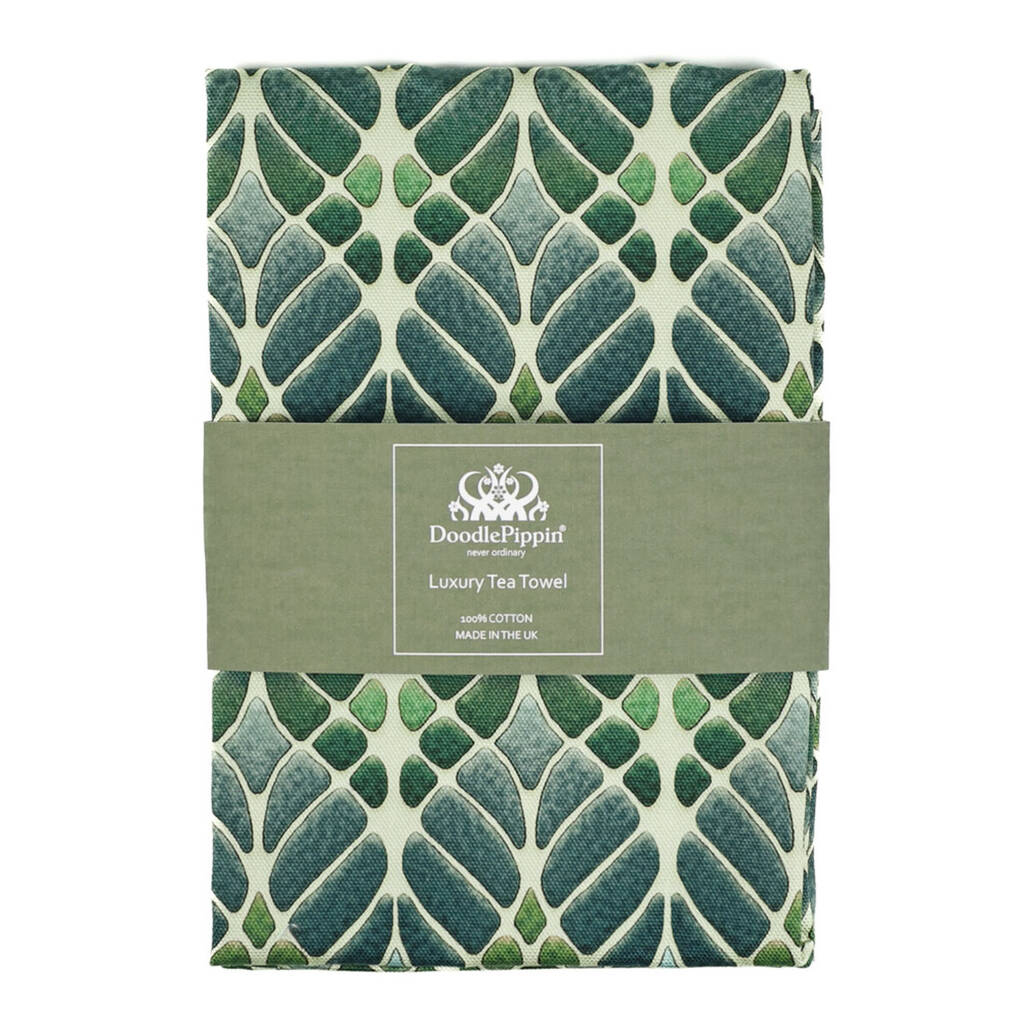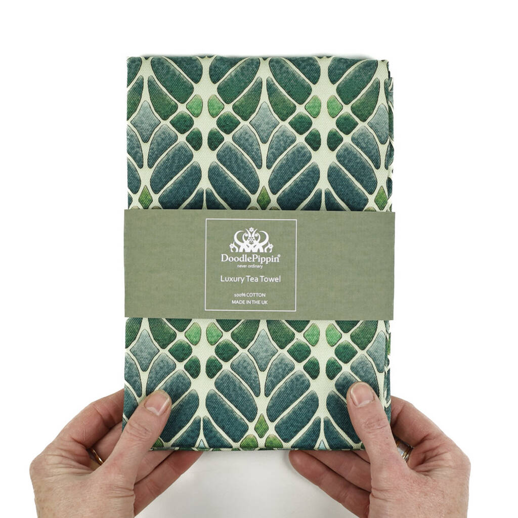 Interwoven Trees Sage Green Tea Towel | 100% Cotton | Made In England