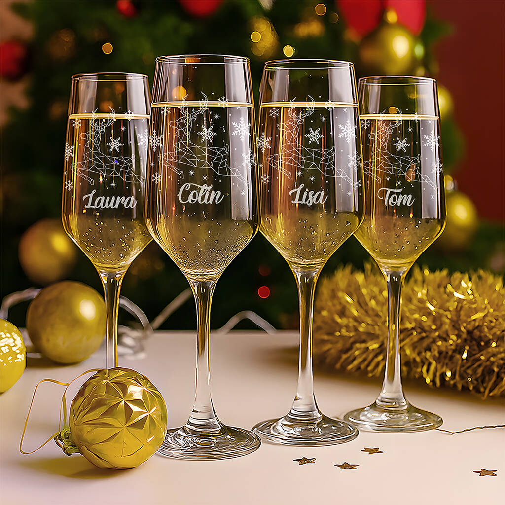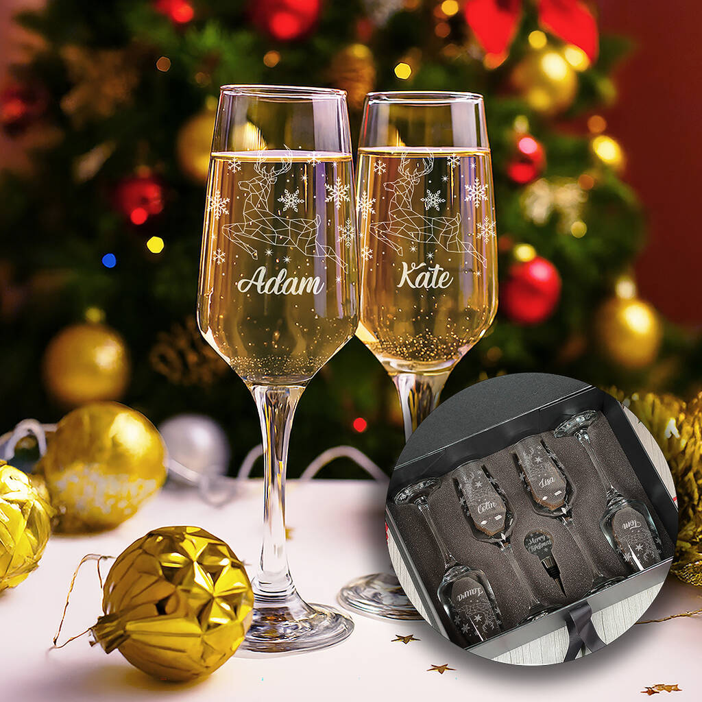 Two Or Four Christmas Reindeer Champagne Flutes And Gift Boxed Set
