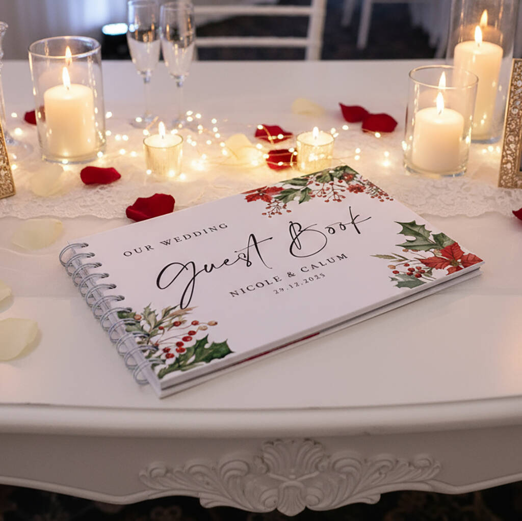 Add on an optional matching Guest Book to create a stunning pairing with your post box for your guests to write comments inside to create a special keepsake from the day. The Guest Book has a hardback white cover with matching white binding rings with 25 plain white thick cartridge paper sheets (thicker than normal printer paper). Please note that the guest book does not feature the mirror acrylic.