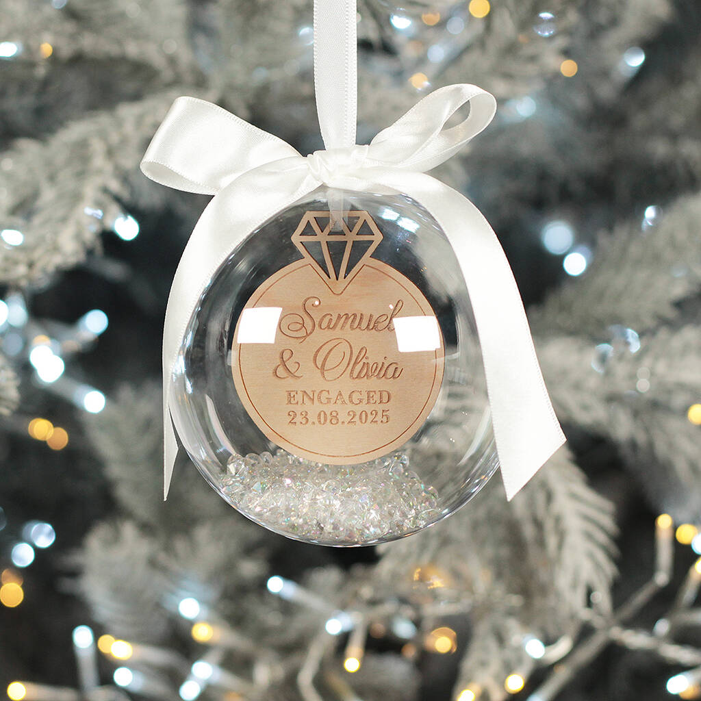 Personalised Engagement Wedding Ring Christmas Bauble, 1 of 7