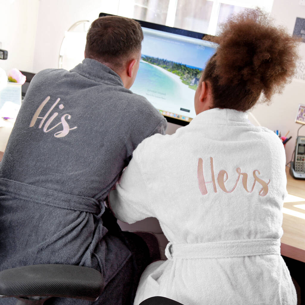 Embroidered on the back of the robe with text of your choice - the classic 'His' and 'Hers' robe is popular and a great anniversary gift or wedding present. However, because love is love, this listing allows you to choose text of your choice - classic options include