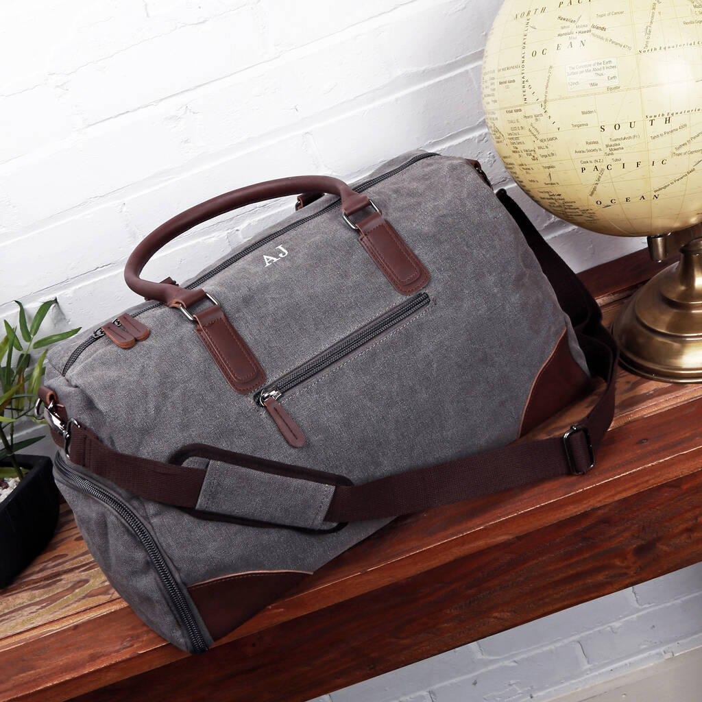 Personalised Vintage Canvas Weekend Holdall Bag, 1 of 8