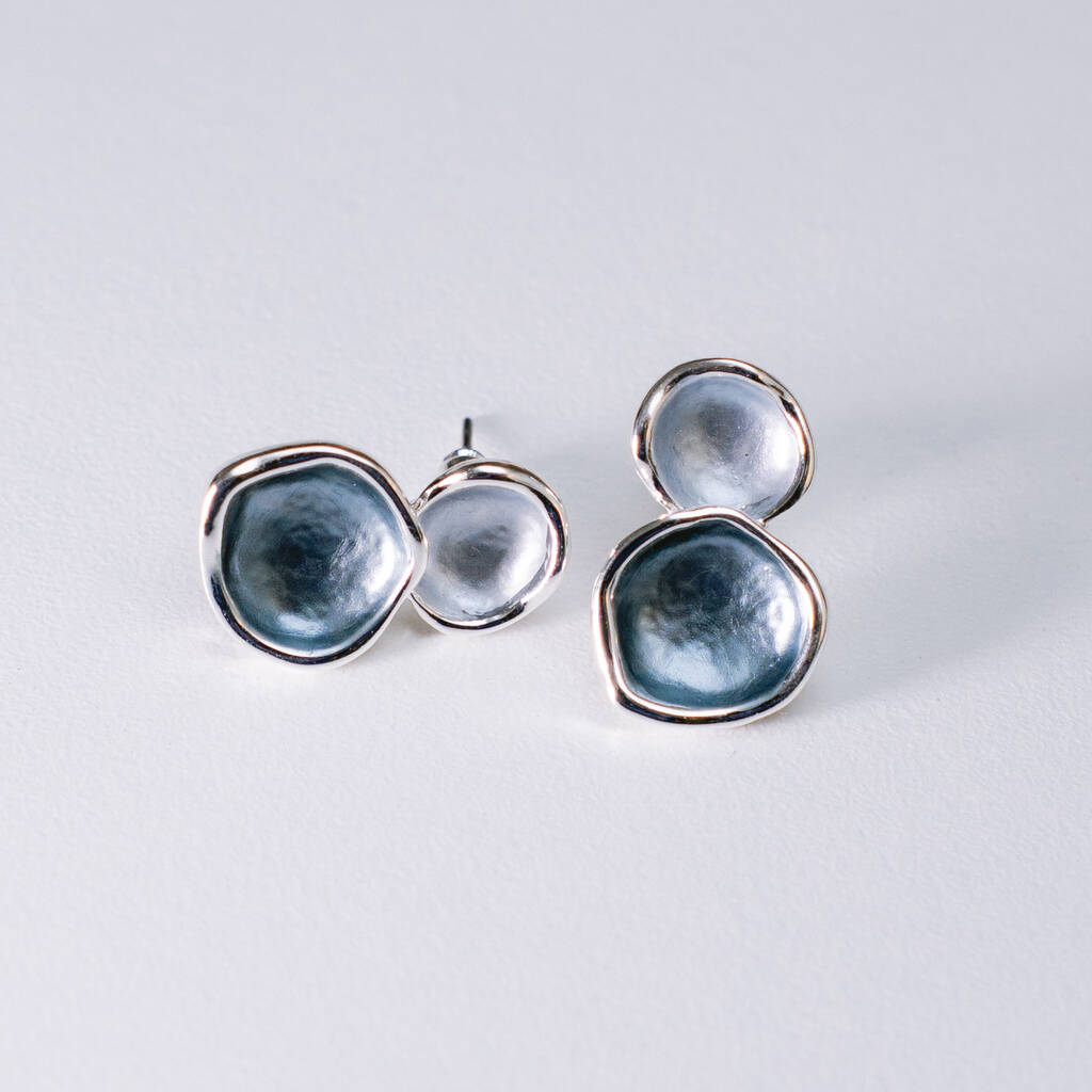 Matte Silver And Dark Grey Double Disc Stud Earrings
