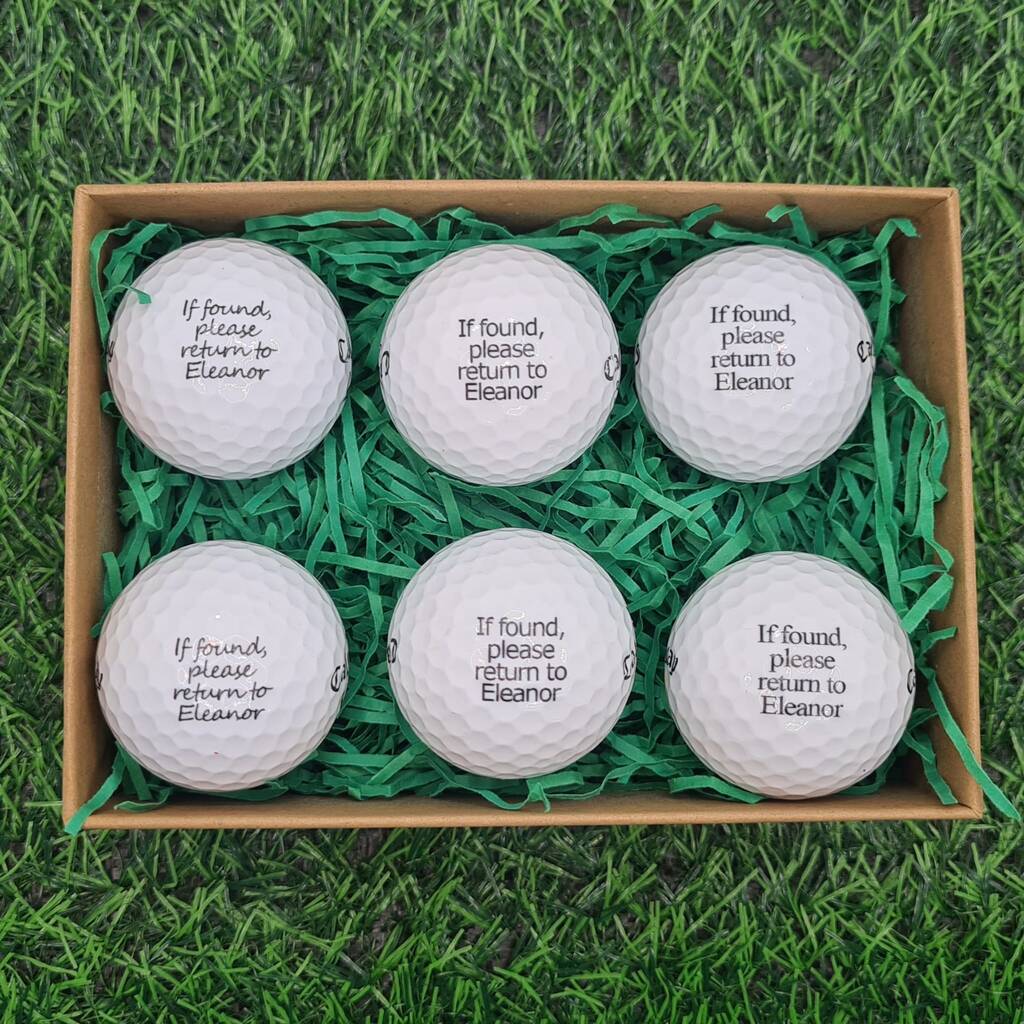 Six Branded Golf Balls Personalised With ''If Found, Please Return To .. ..''