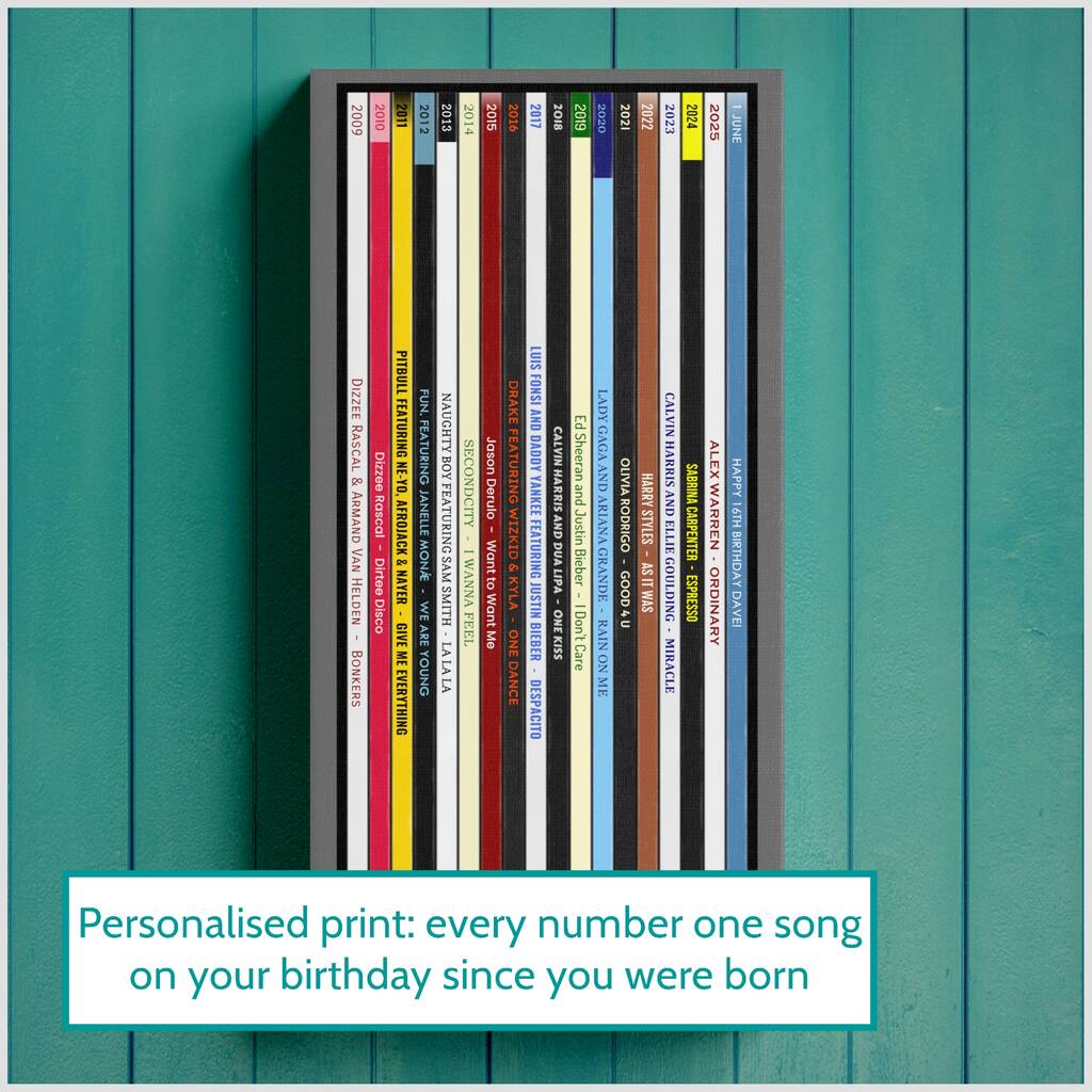 16th Birthday Music Print Number Ones Since 2009 Personalised