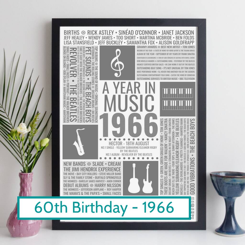 Personalised 60th Birthday Print 1966 Music Year Gift