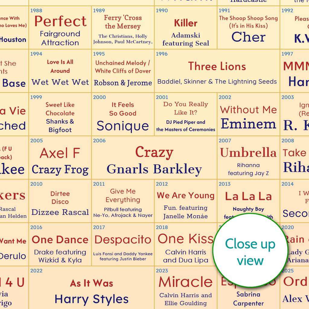 • Personalised Number One Songs Print Any Year Music Gift, thumbnail 6 of 11