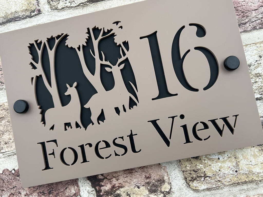 Personalised Deer In Forest House Acrylic Number Sign, 1 of 7