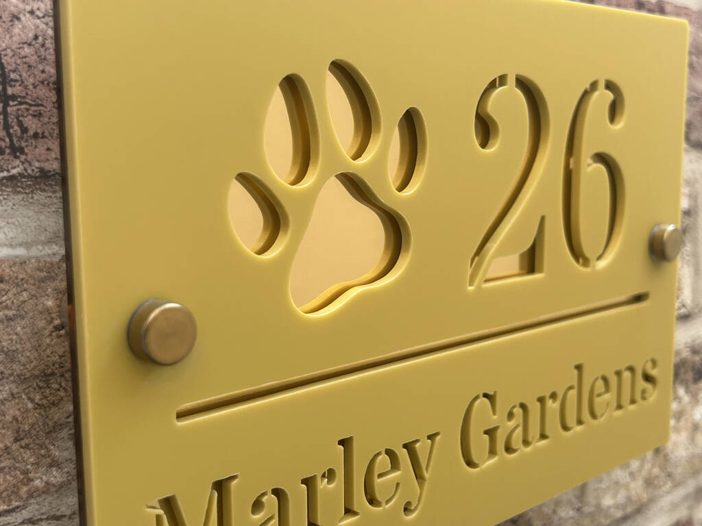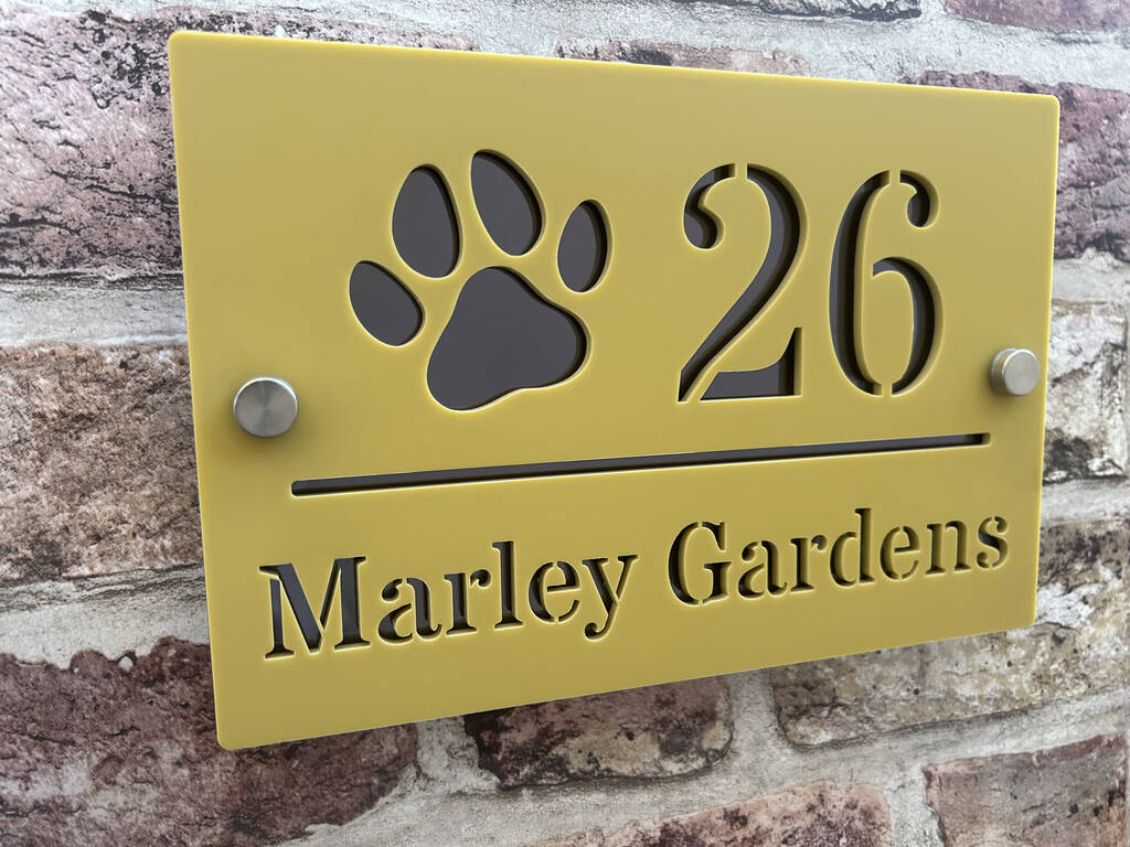 Personalised Dog Footprint Design House Acrylic Number Sign