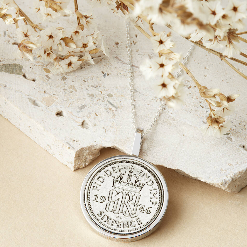 A beautiful necklace handcrafted from real 1946 sixpences, the perfect 80th birthday gift for her - a wonderful way to remember their birth year.