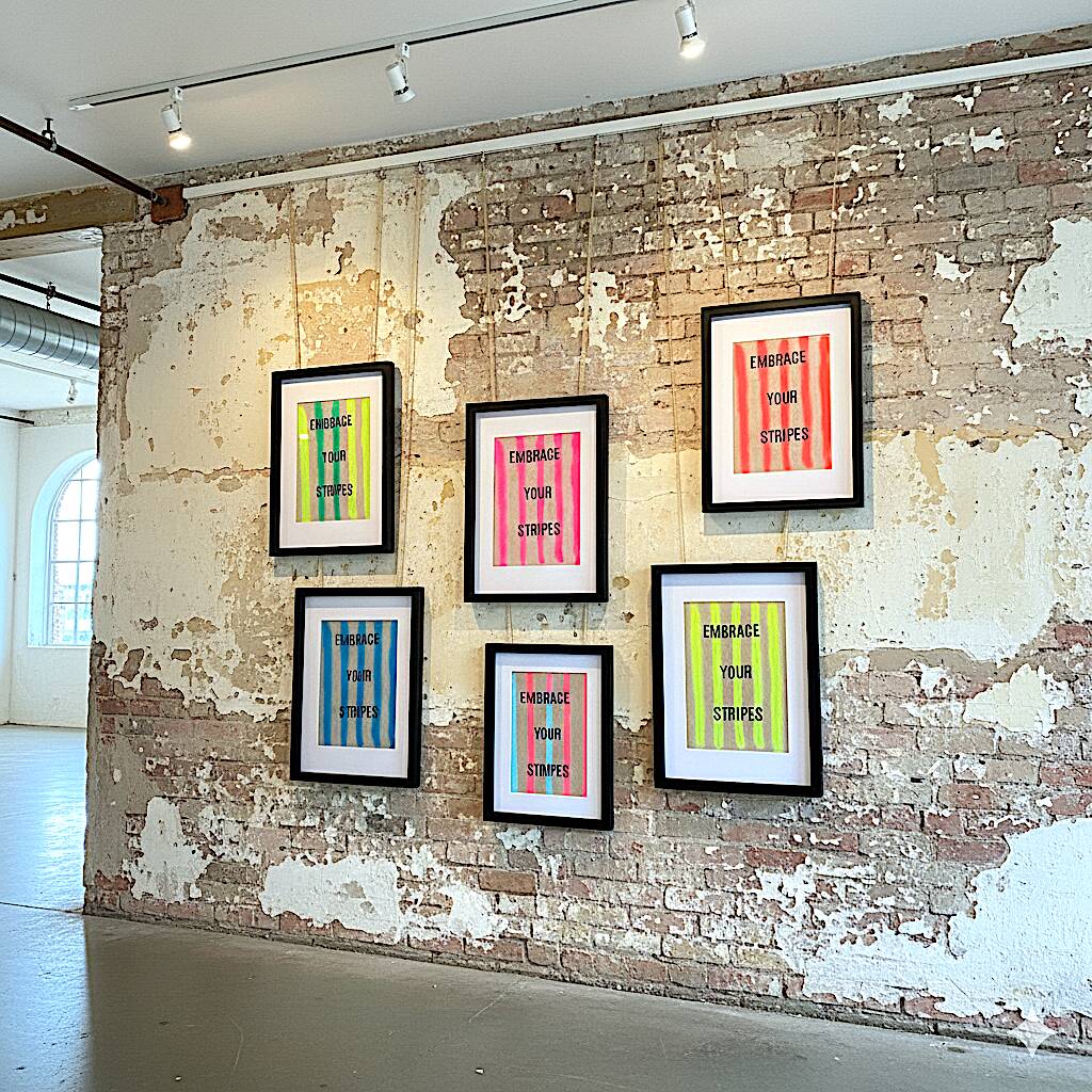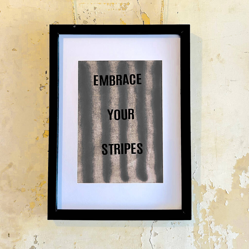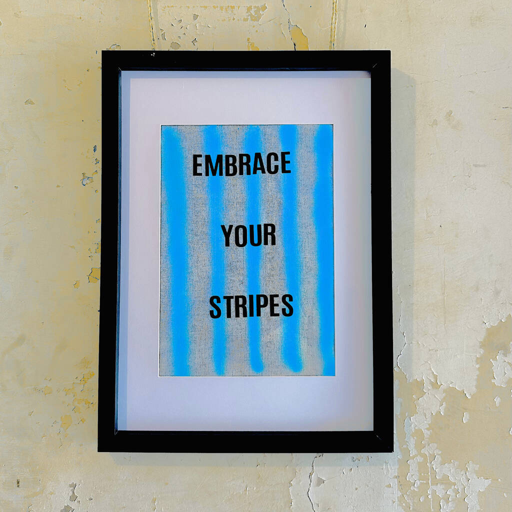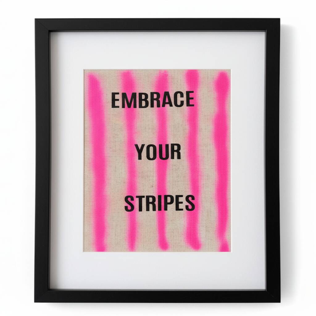 Embrace Your Stripes hand-illustrated design is a free-hand spray painted iconic stripes-effect with each stripe being purposefully not exactly the same.