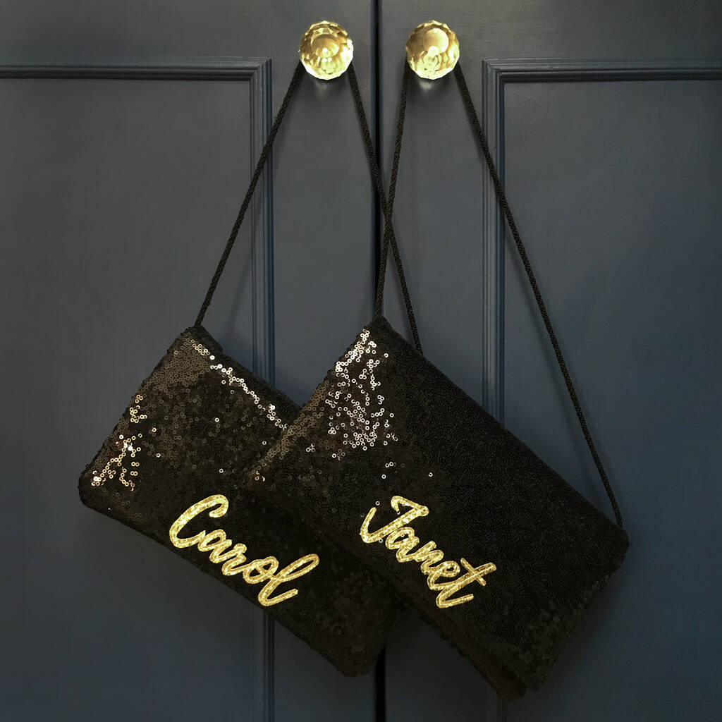 Black Or Navy Sequin Name Clutch