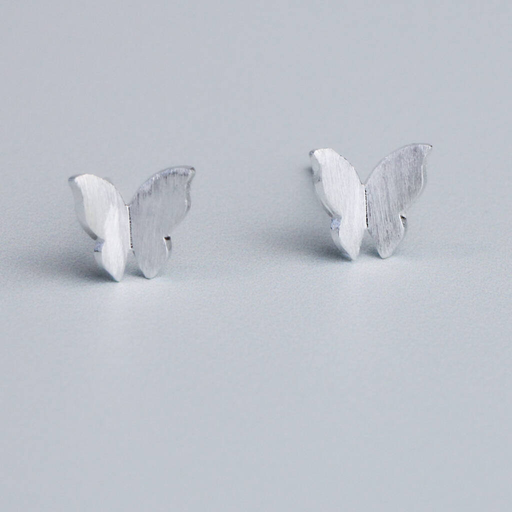 Brushed Sterling Silver Butterfly Stud Earrings, 1 of 6