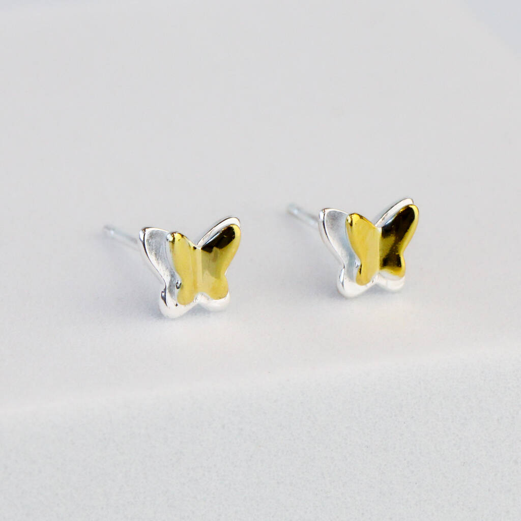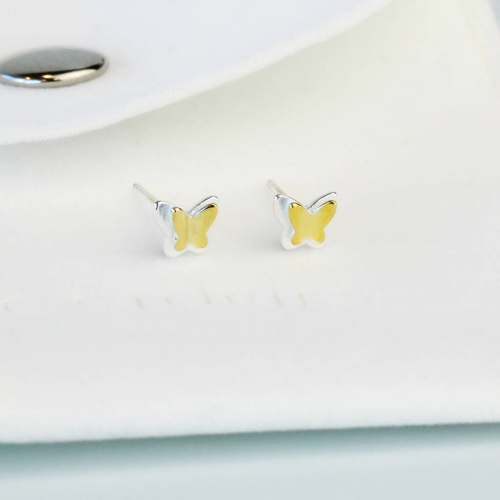 Sterling Silver And Gold Tiny Butterfly Stud Earrings