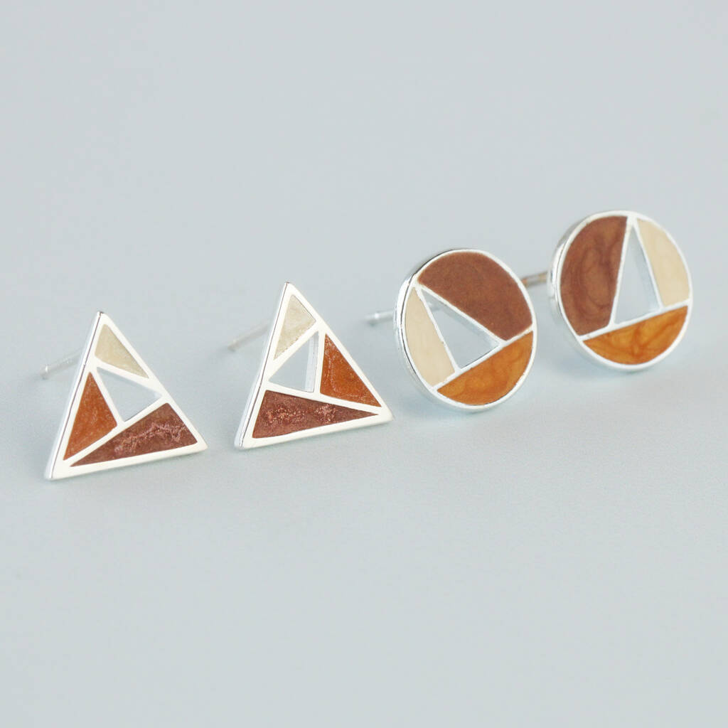 Sterling Silver Brown Geometric Stud Earrings, 1 of 4