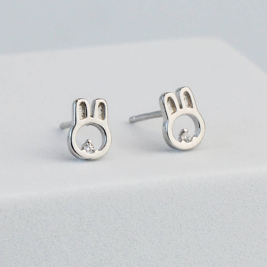 Sterling Silver Crystal Nose Bunny Stud Earrings