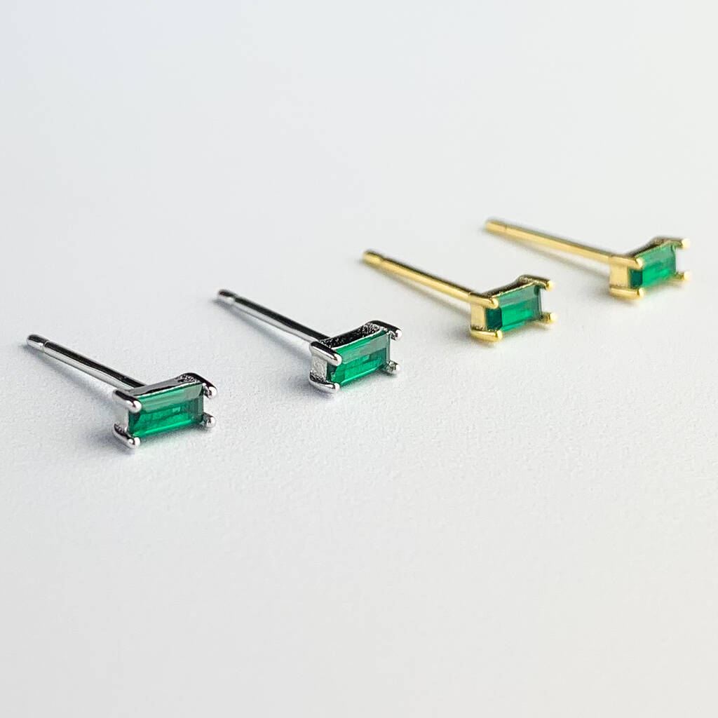 Sterling Silver Emerald Cut Green Crystal Stud Earrings