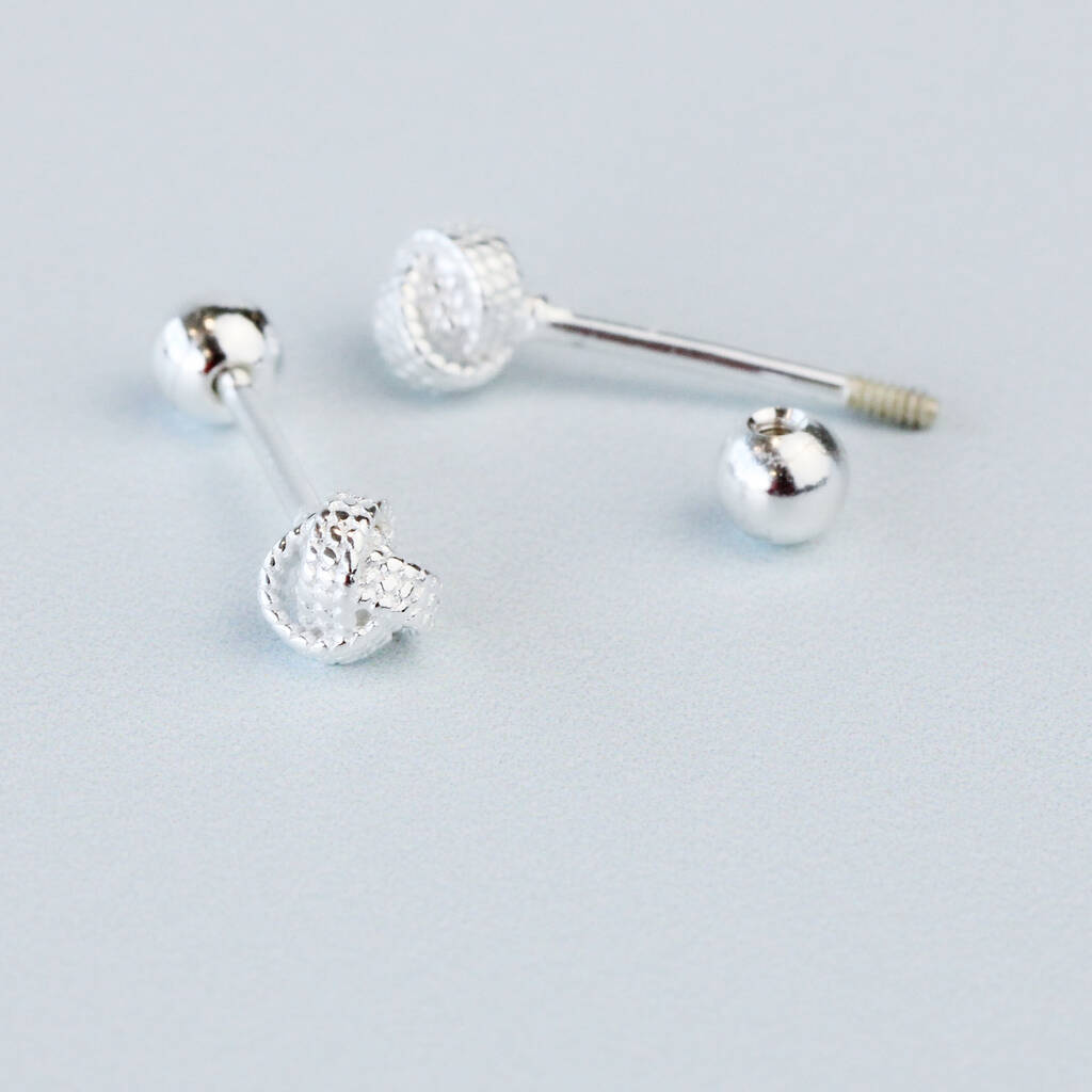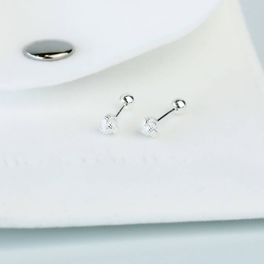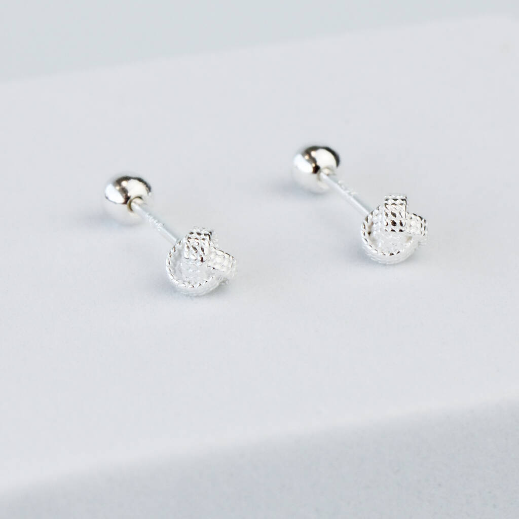 Sterling Silver Rope Knot Design Screw Back Stud Earrings