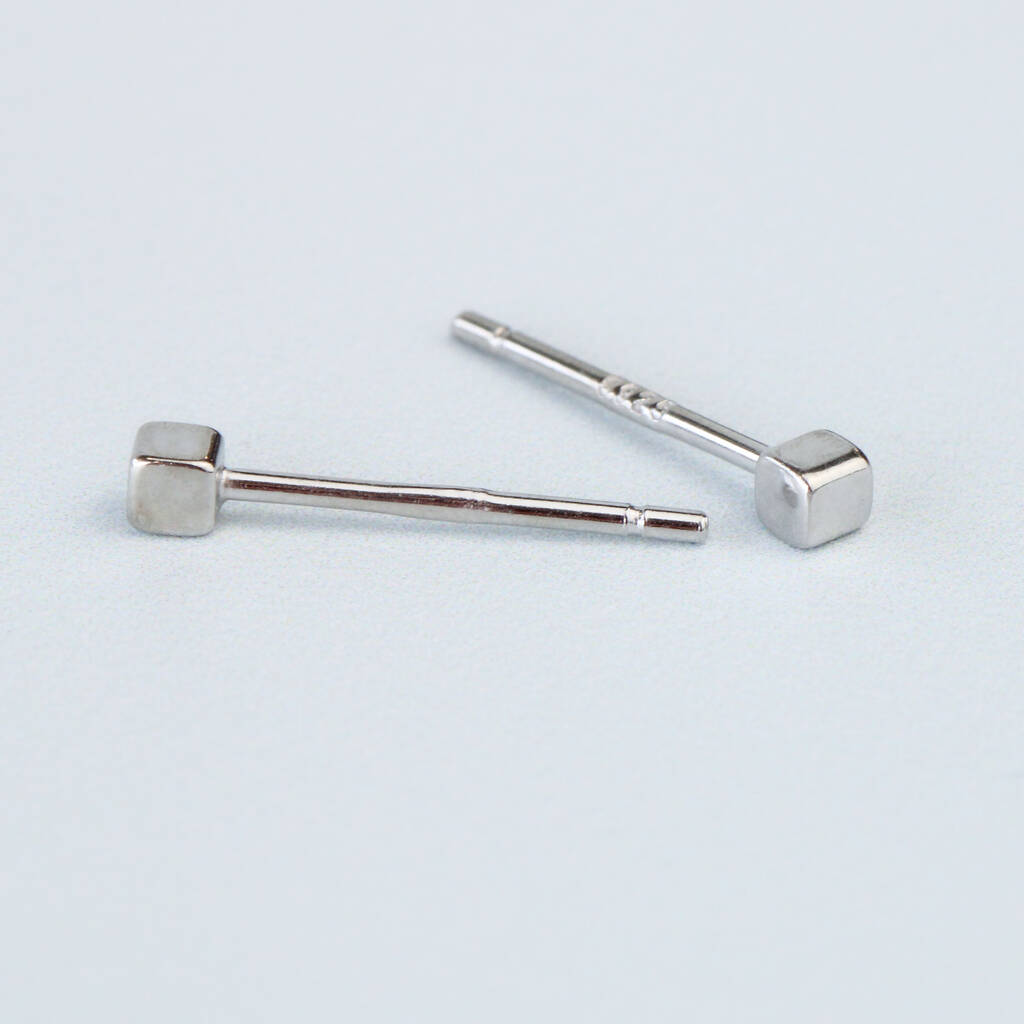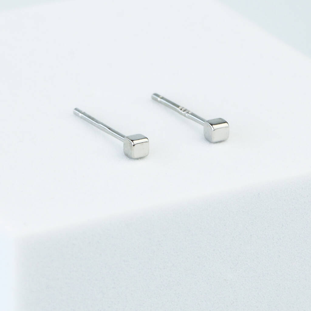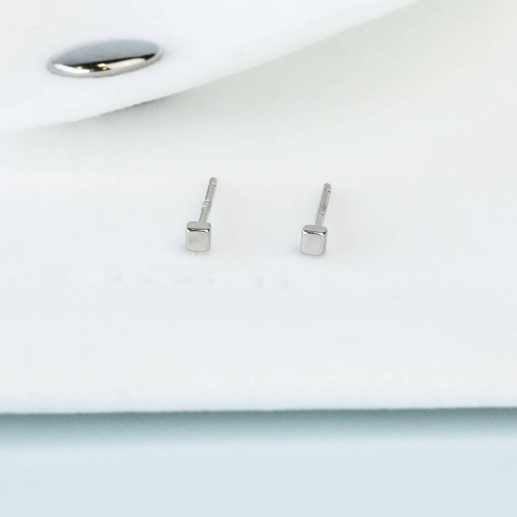 Sterling Silver Tiny Simple Cube Stud Earrings, 1 of 4