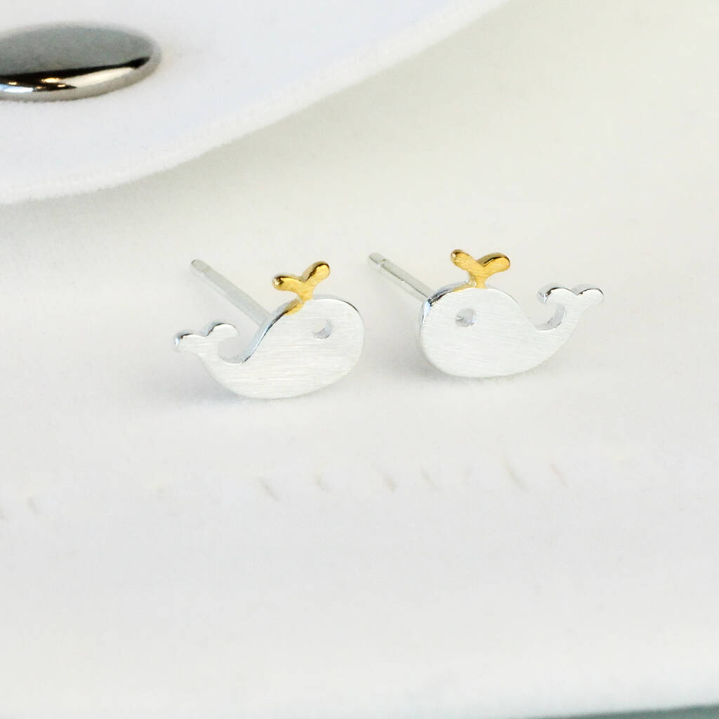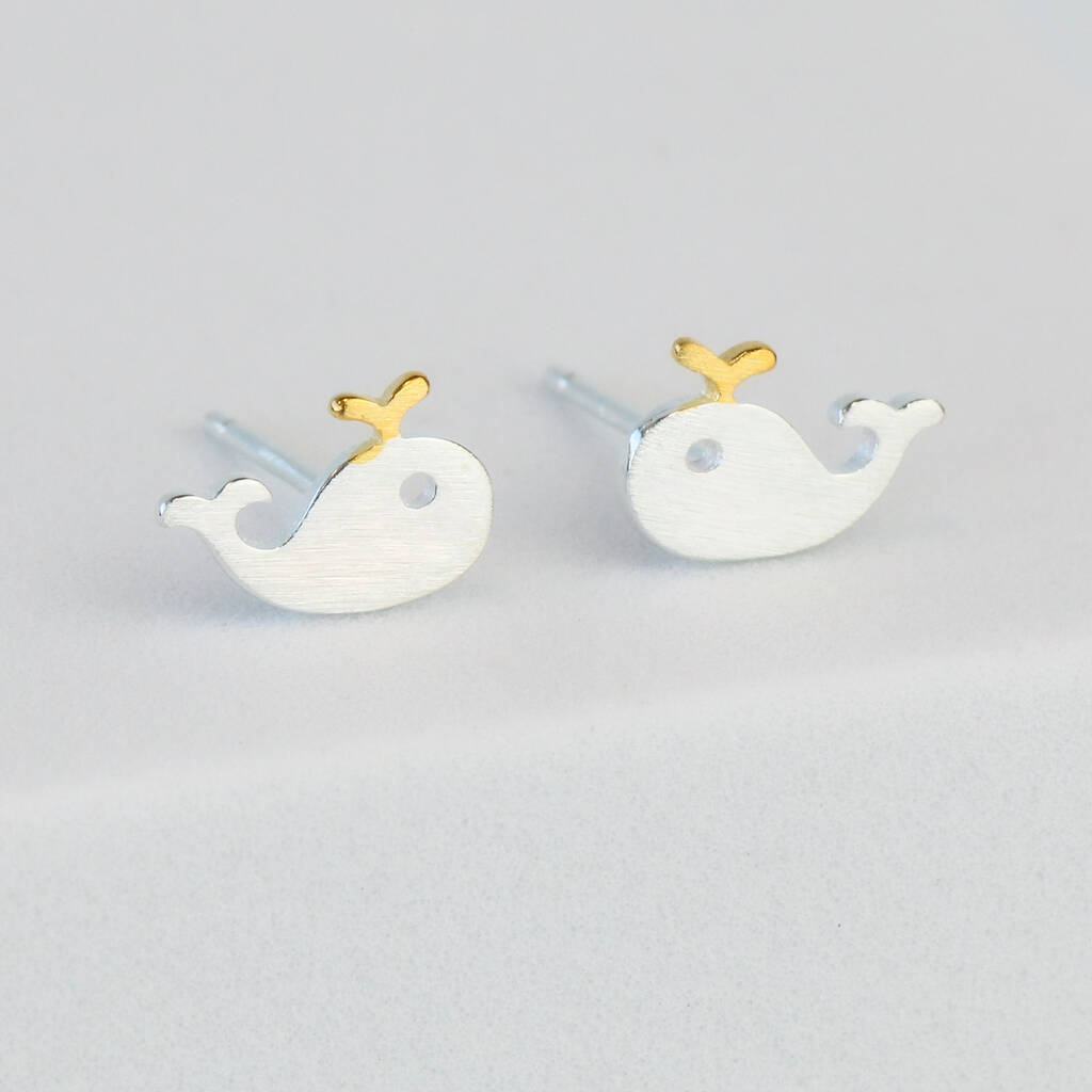 Sterling Silver Whale Stud Earrings, 1 of 5