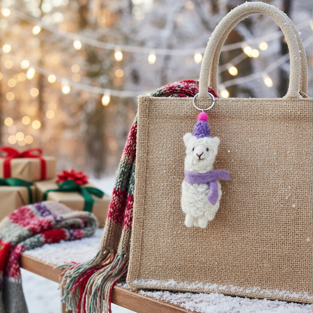 Handmade Felt Party Alpaca Keyring