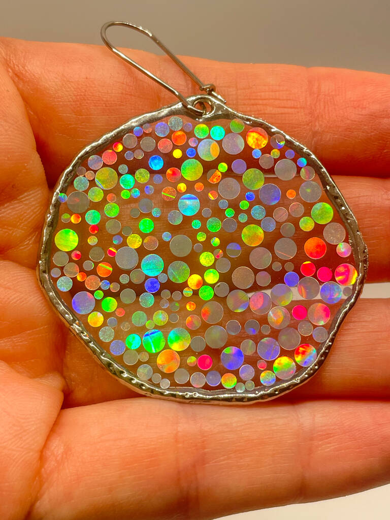 Large Disco Earrings With Holographic Silver Sparkles
