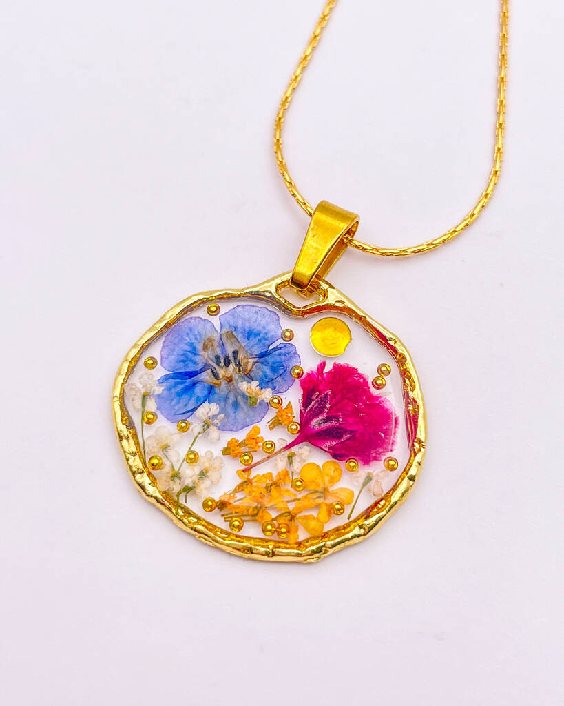 Necklace Handmade With Purple And Blue Flowers, 1 of 10