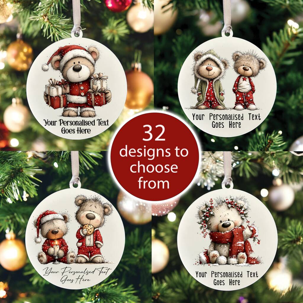 Personalised Christmas Teddy Bear Family Hanging Bauble Decoration