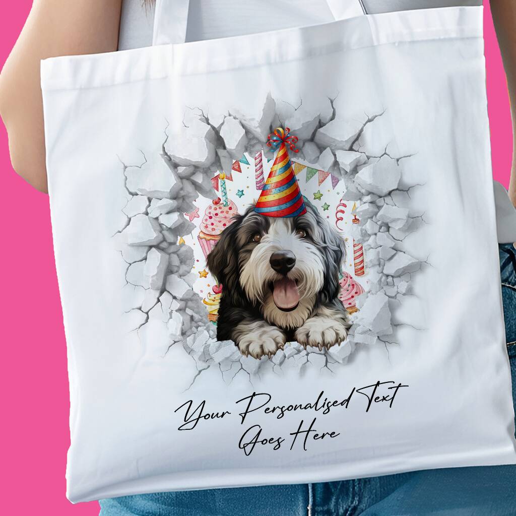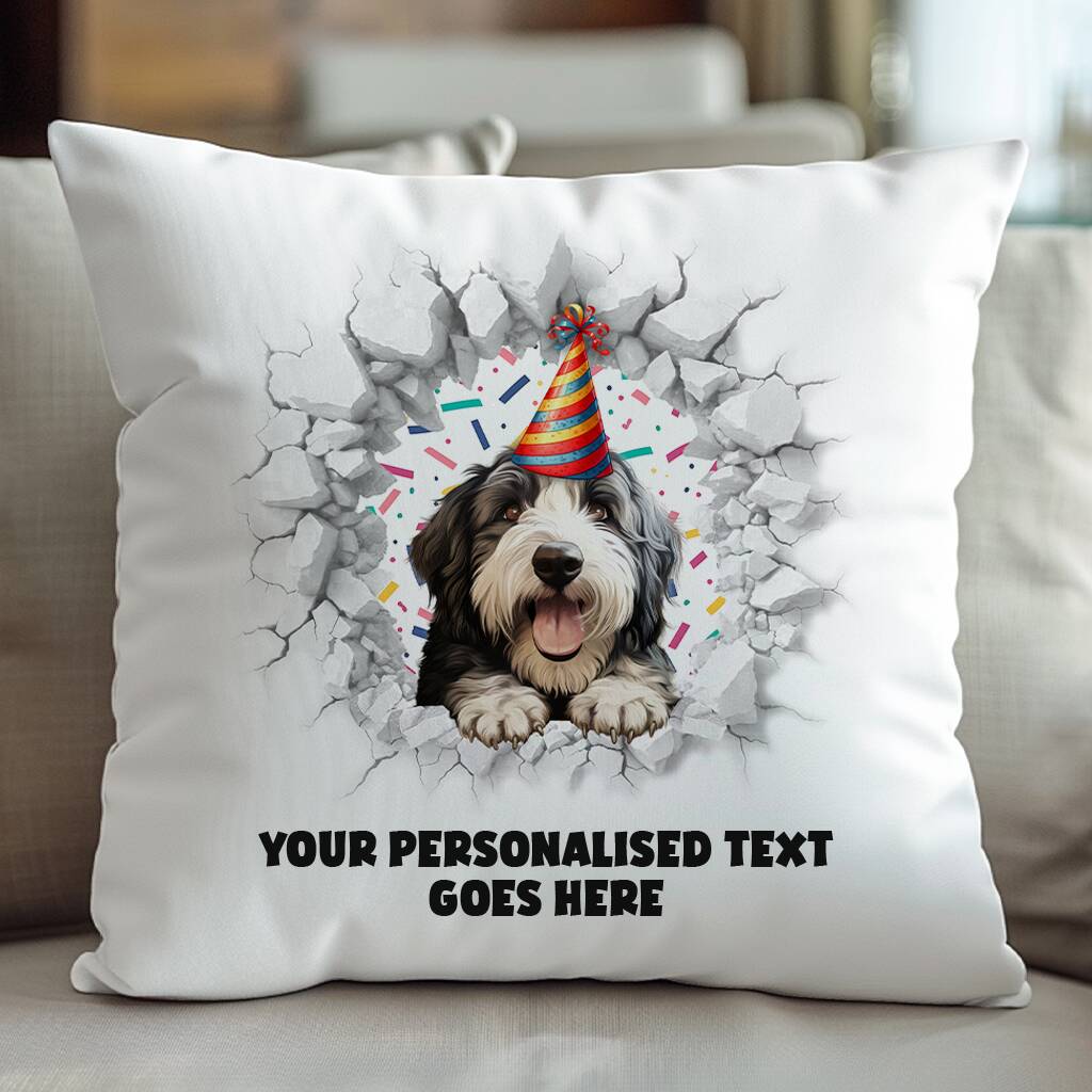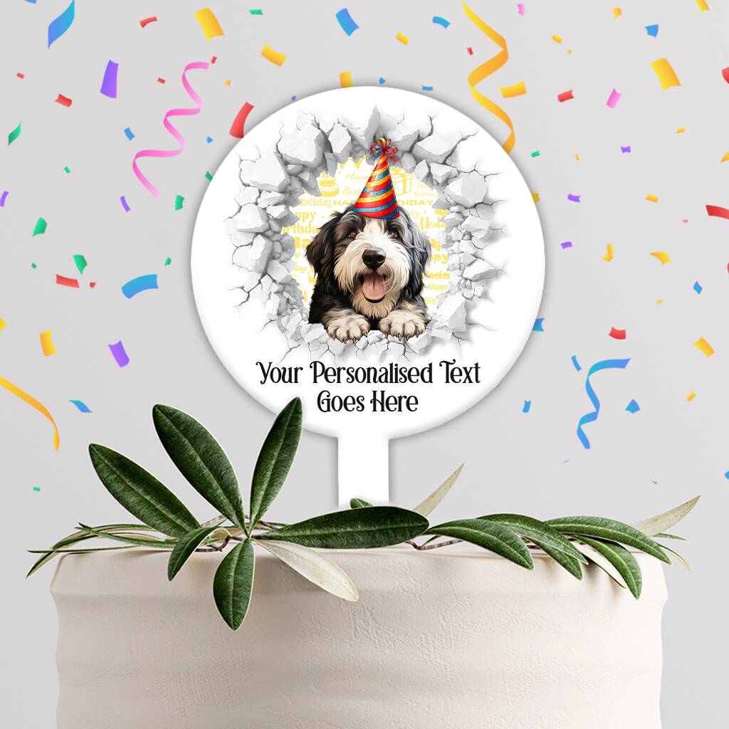 Personalised Old English Sheepdog Birthday Break Through Dog