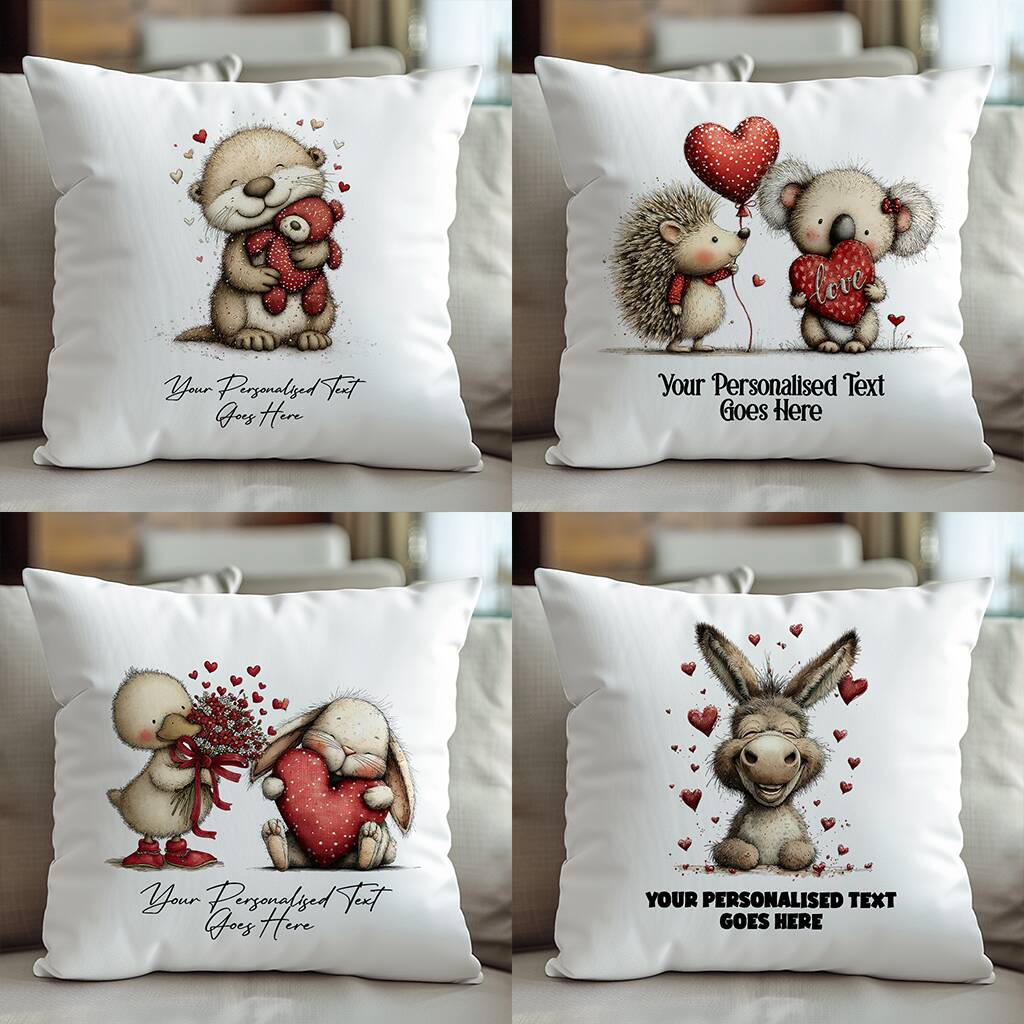 Personalised Whimsical Valentine Anniversary Love Animals Cushion