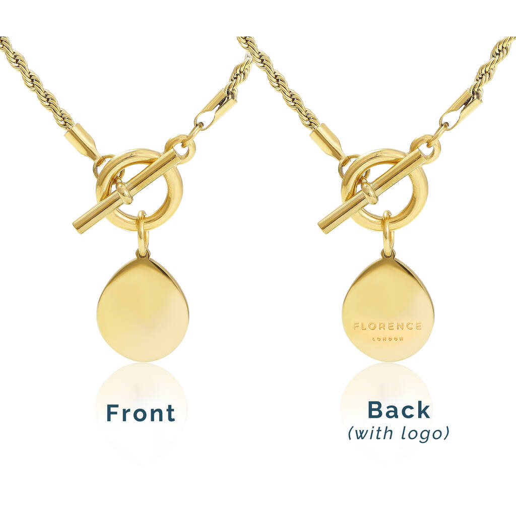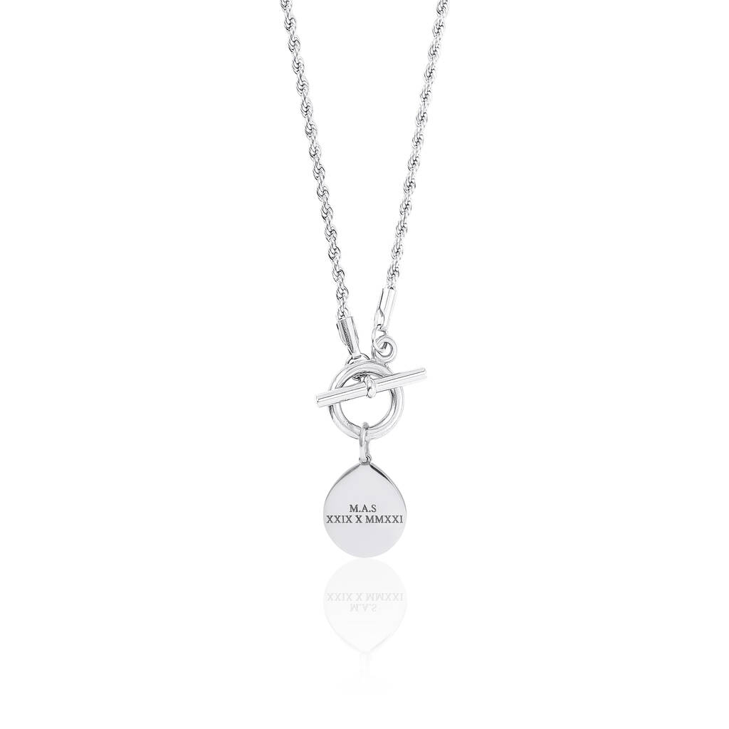 Our best-selling T-Bar necklace is a modern take on the classic style and sits on a stylish rope chain.