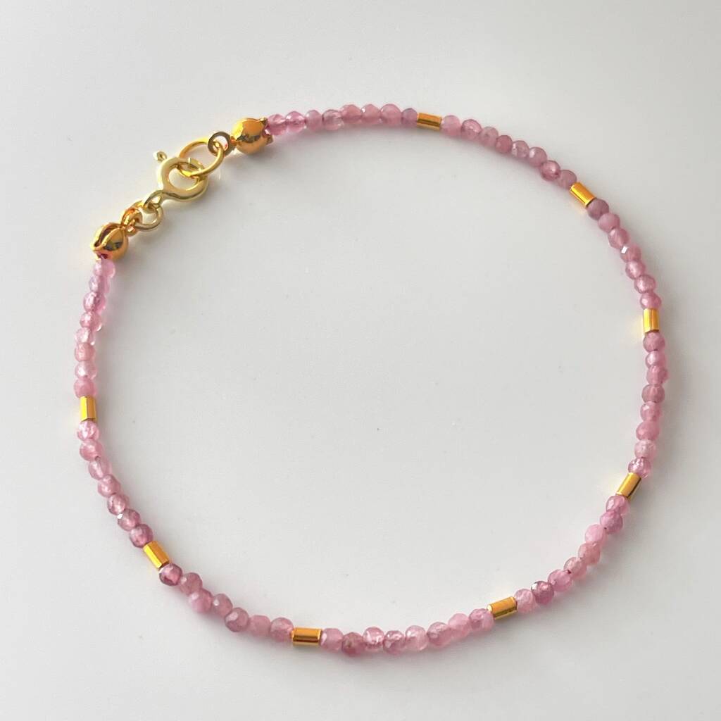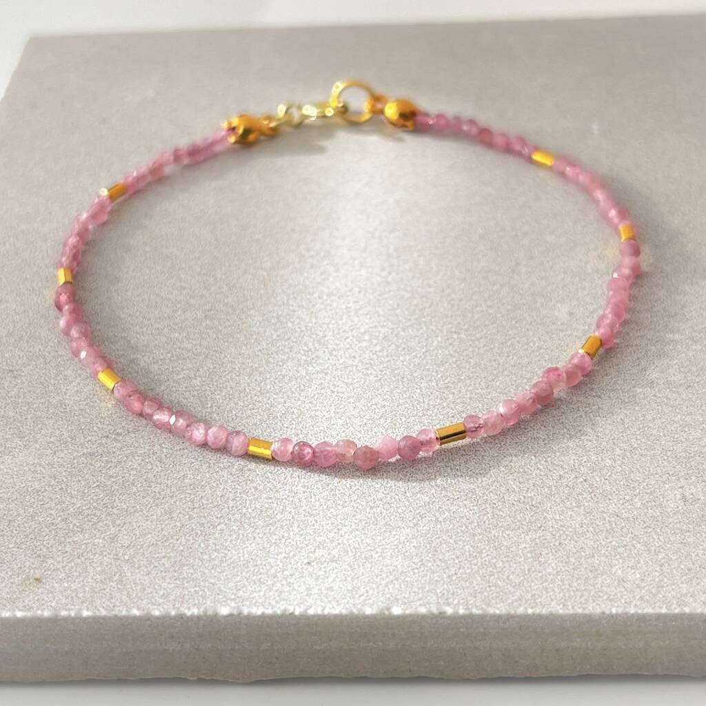 Dainty Pink Tourmaline Beaded Bracelet In Gold Vermeil