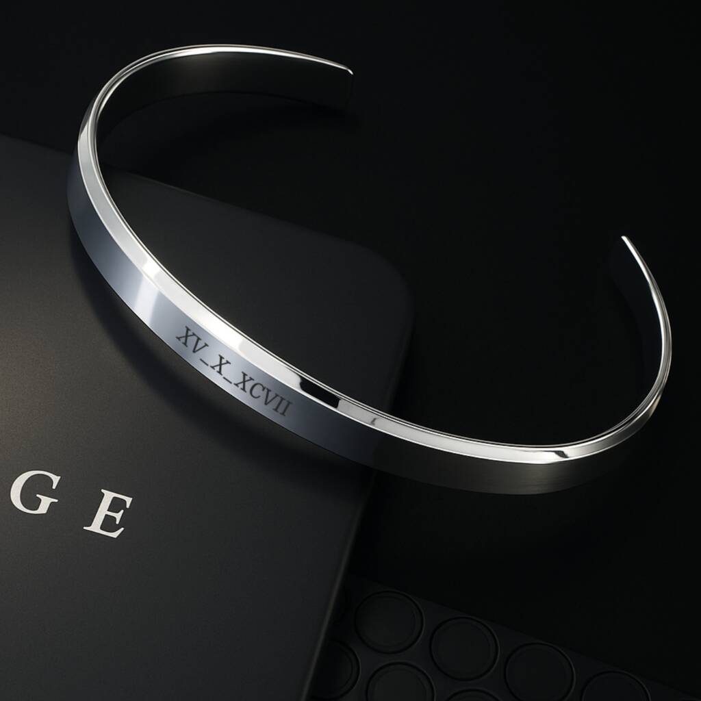 Men's Personalised Minimalist Polished Titanium Cuff Bangle