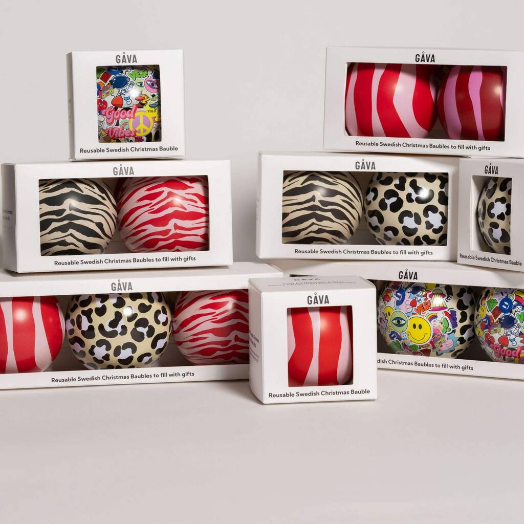 Gåva Baubles are reusable baubles that can be filled with almost anything. These unique gifts in Swedish designs are the perfect present this Christmas.