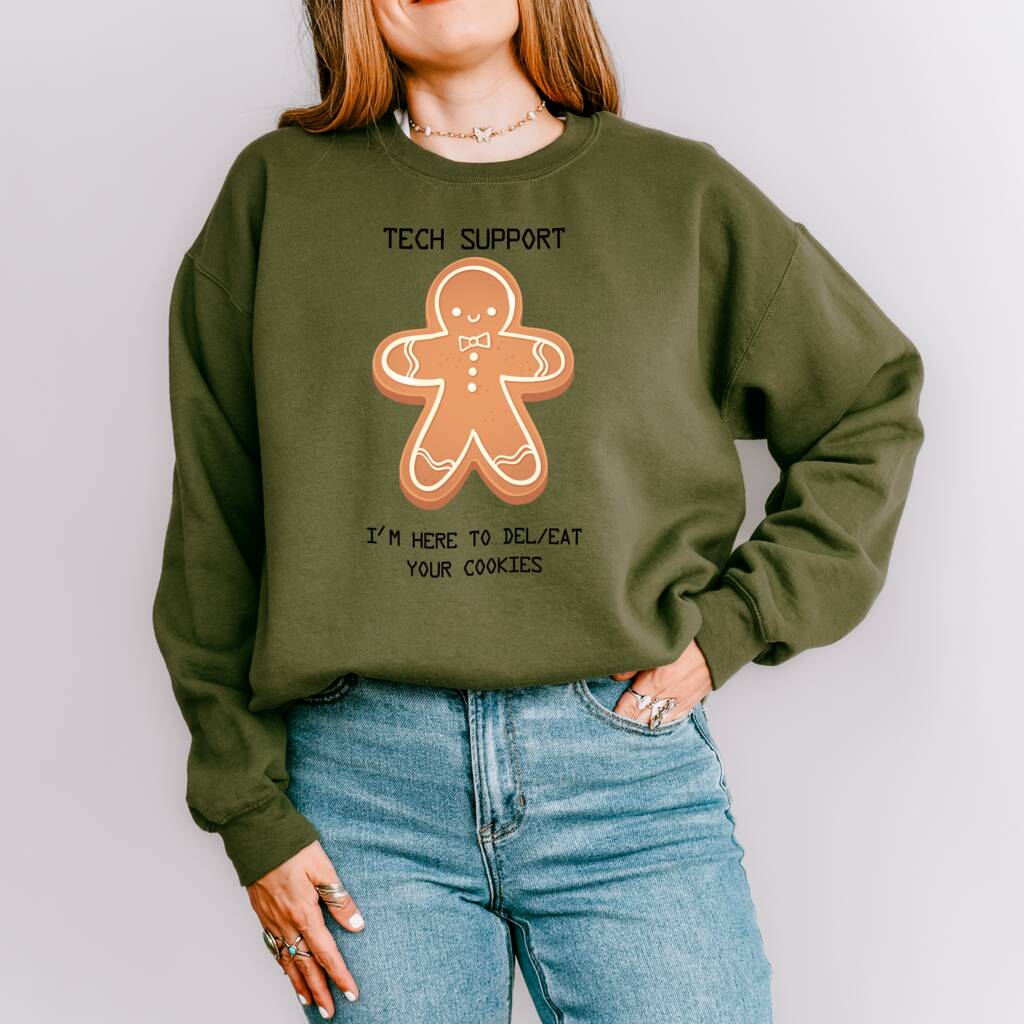 Tech Support Gingerbread Jumper – “I’m Here To Del/Eat Your Cookies” Geek Sweater