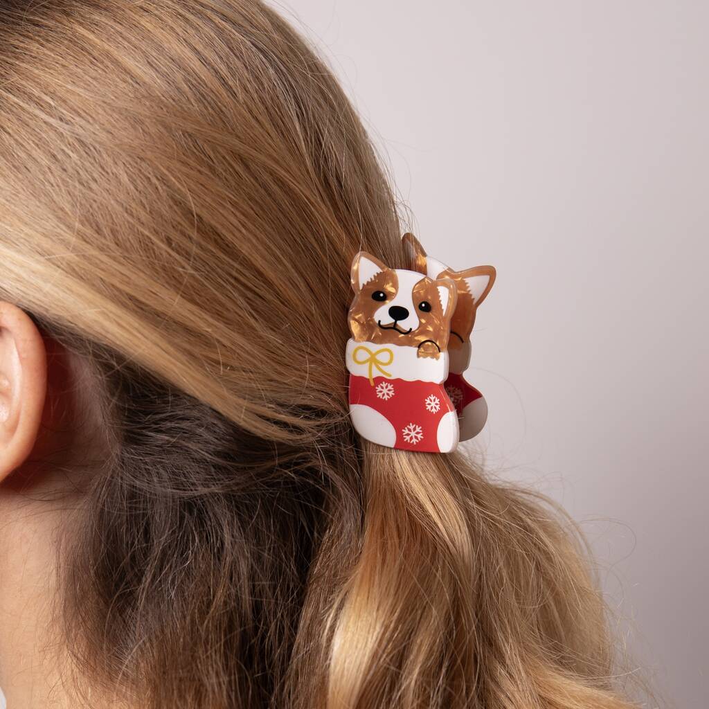 Christmas Corgi Claw Clip