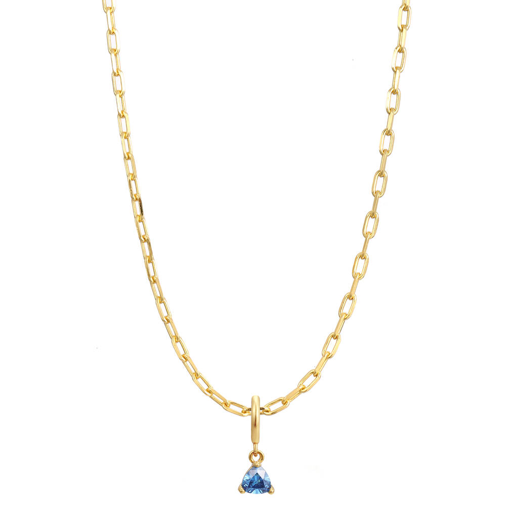 Mark your or a loved one's December birth month with our December Birthstone Charm Necklace. Set on a paperclip link chain, the blue topaz coloured stone can be worn solo, or you can add other charms and spacers from our Birthstone Charm Collection to suit your look or mood.