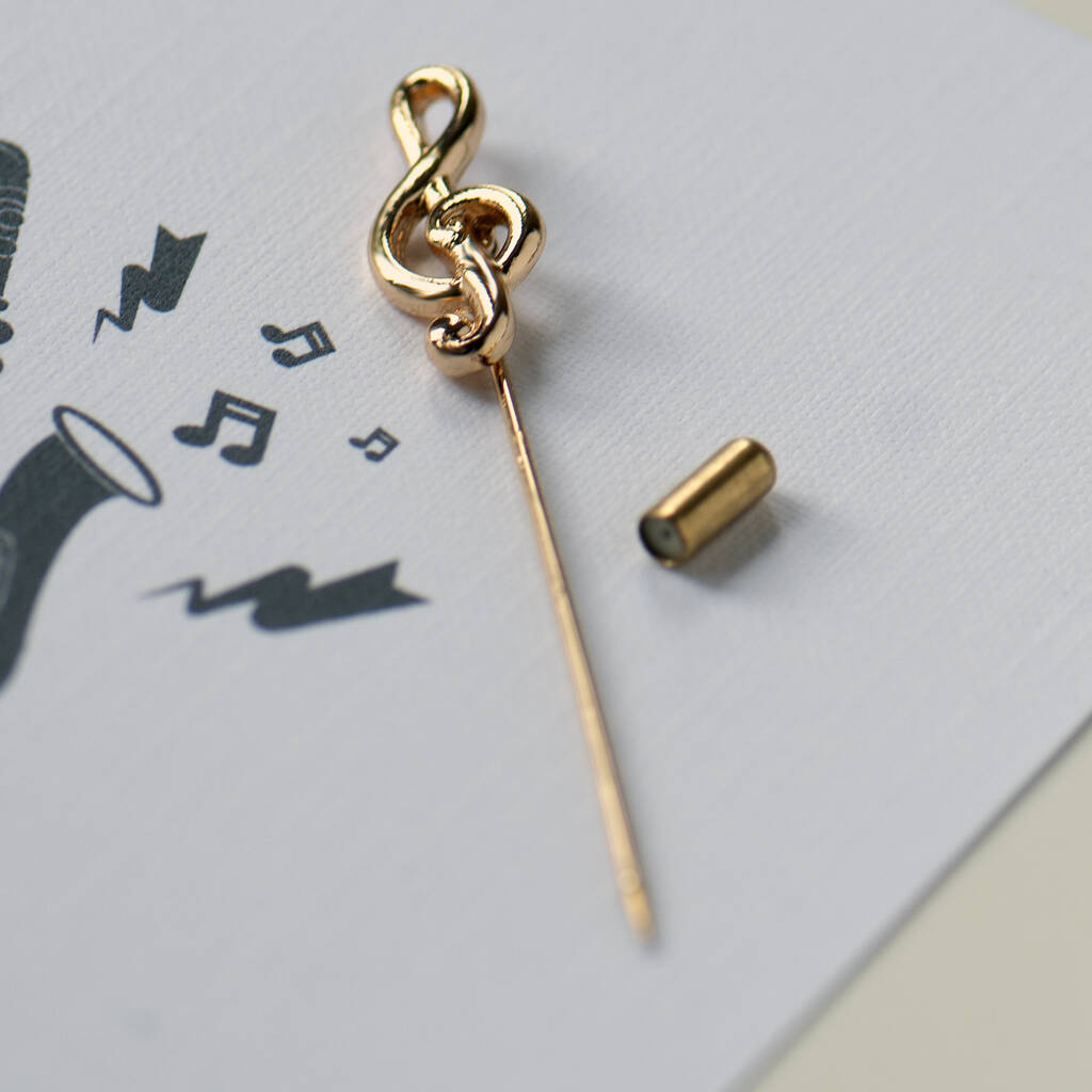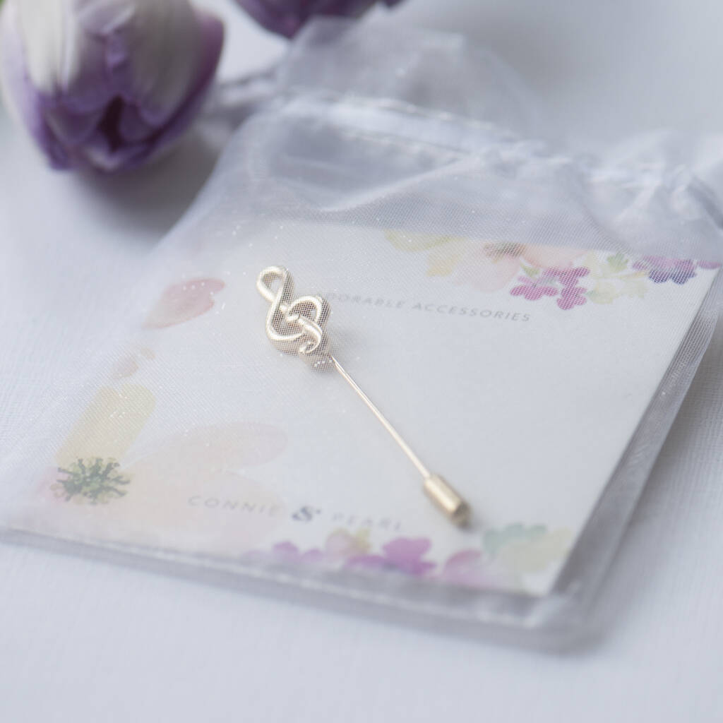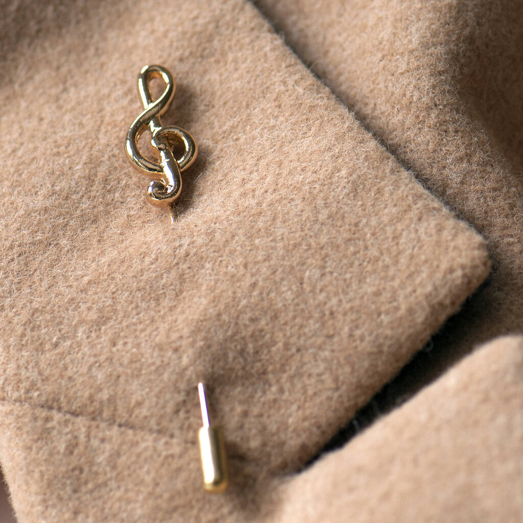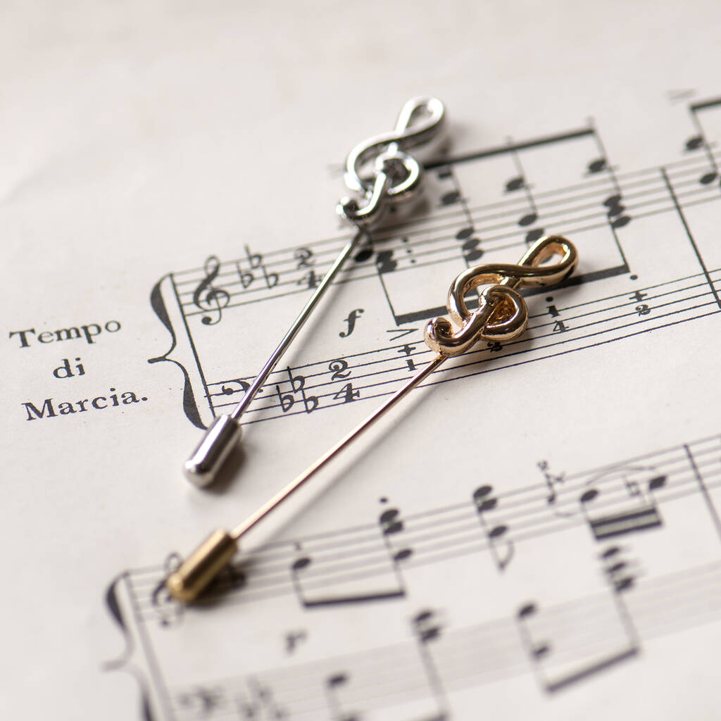 Treble Clef lapel pin available in either silver or gold finish, this unisex pin looks gorgeous on any lapel.