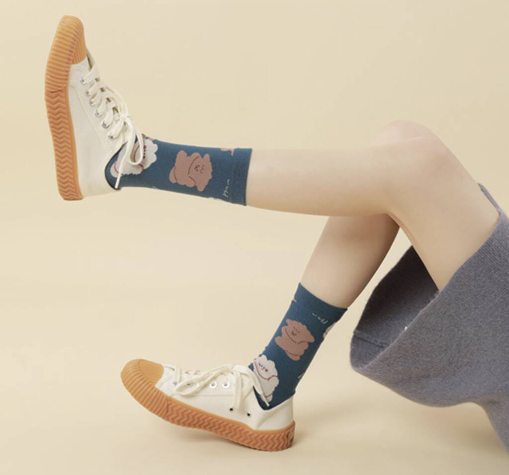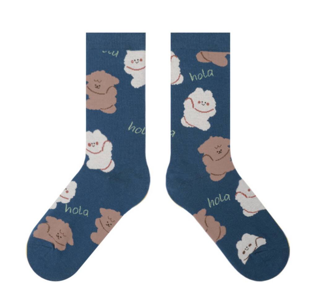 Dog And Bunny Print Mid Calf Length Socks
