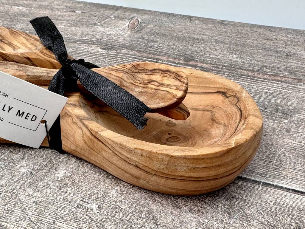 • Olive Wood Condiment Bowl And Spoons, thumbnail 1 of 3